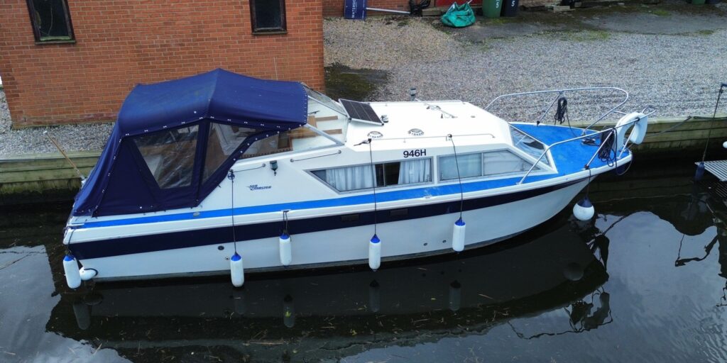 Seamaster 813 – 1979 – Powered by a BMC 1.8 diesel engine on a shaft. 4 berths in 2 cabins with Jabsco electric toilet to holding tank and shower. Specification to include shore power supply, battery charger with 240v sockets, heating, immersion/calorifier, full galley to including 2 burner hob, oven and grill, refrigerator and sink. BSC 2027. A well kept Seamaster 813 ideal for exploring the inland waterways. NYA Stock – Sold as traded in