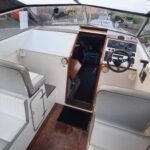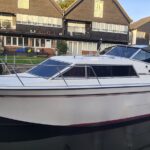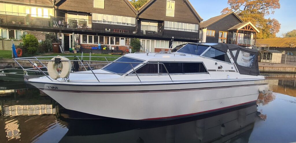Seamaster 820 – 1991 – SIngle Beta 43hp diesel engine through a shaft drive. 4 berth accommodation with a single toilet and shower compartment. Specification to include; bow-thruster, hinged radar arch and folding screens, speed log, depth sounder, warm air heating, immersion heater. This Seamaster provides a very sociable cockpit area, perfect for spending days out on the river with friends/family. A low air-draft allows her access under most Broads bridges. One of only a few boats fitted out by Carringtons and is in lovely condition. BSC 01/09/25