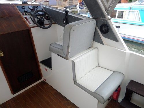 SEAMASTER 820 – 1991 – Single Beta 43hp Diesel engine. New engine 2012 and only run 99 hours since! 4 berth river cruiser with 1 x head and shower. Bow thruster, Eberspacher heating, immersion heater, battery charger. This Seamaster 820 was one of the rare few fitted out by Carringtons and is in fantastic condition.