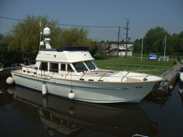 SEA RANGER 48/50 – 2004, 2 x Volvo TAMD 75P diesels. 6 berths in 3 cabins, 2 toilets & 2 showers. What a massive spec including – Full Furuno Nav electronics, Generator, Dishwasher, Electric toilets, bow & stern thrusters, BOSE surround system and much more!! Lying with us & presented in beautiful condition throughout.