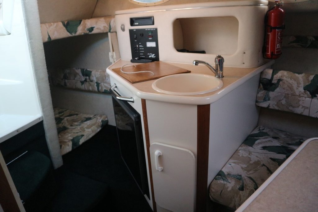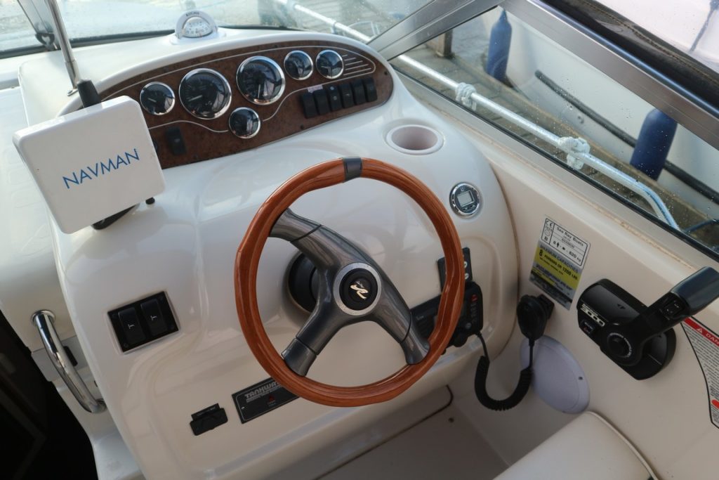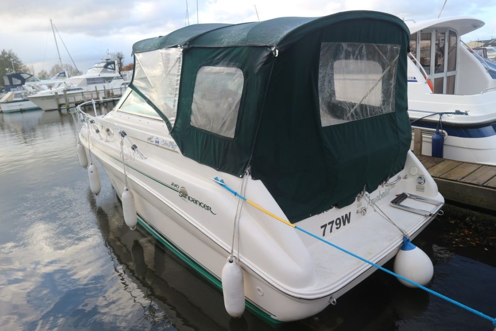SEARAY 240 SUNDANCER – 1999 – Powered by a single Mercruiser 5.0l EFi 240hp petrol. 4 berth accommodation with one toilet. Specification to include; bowthruster, trim tabs, Navman Tracker 5500, VHF, hot water supply and shore power with 240v sockets. Recent full machine polish and antifoul. Low air draft for increased inland access. The Sundancer 240 would be a superb introduction to boating!