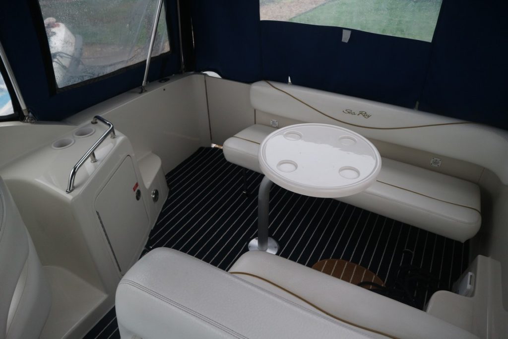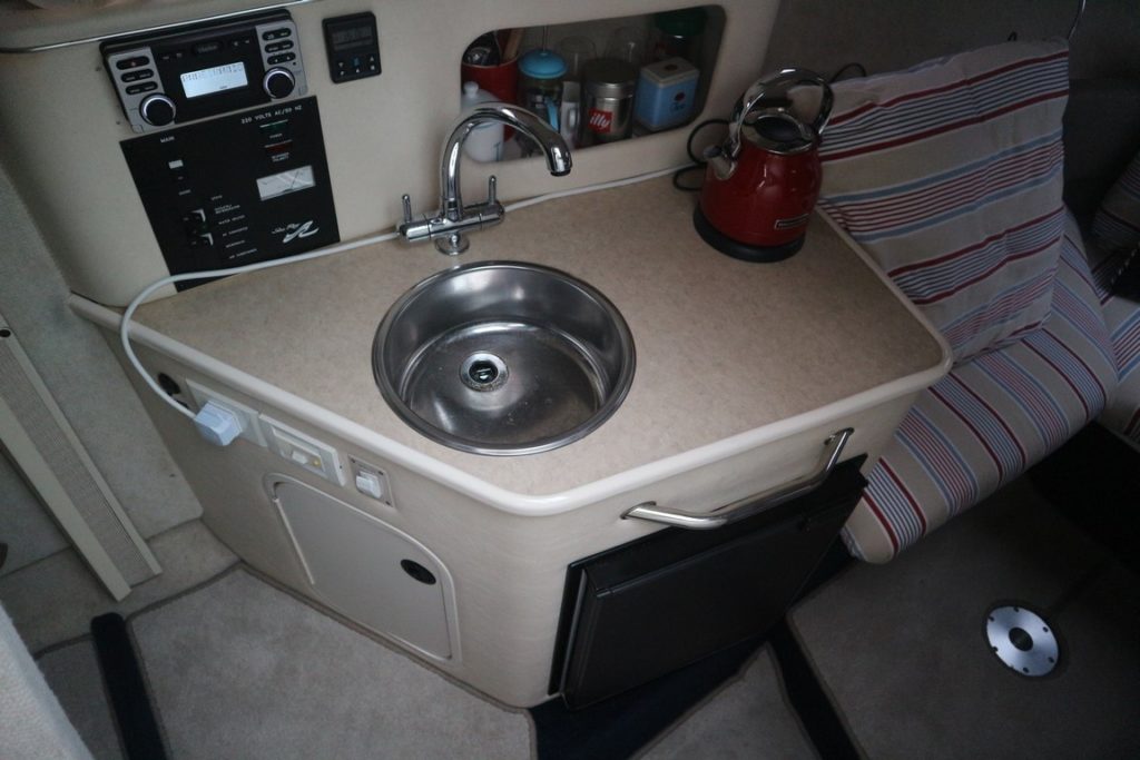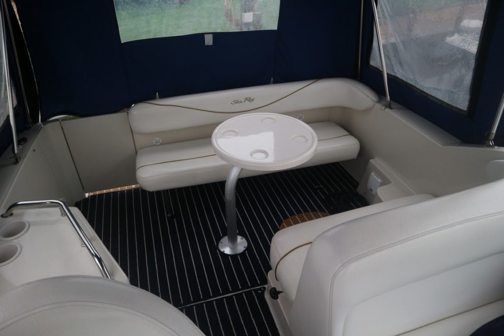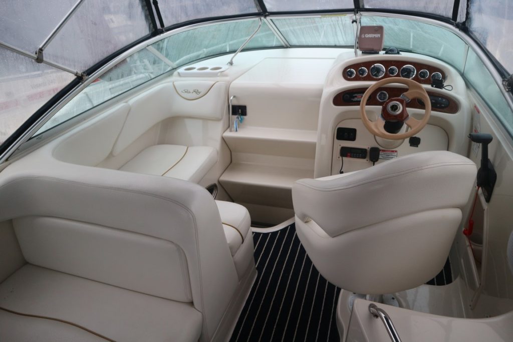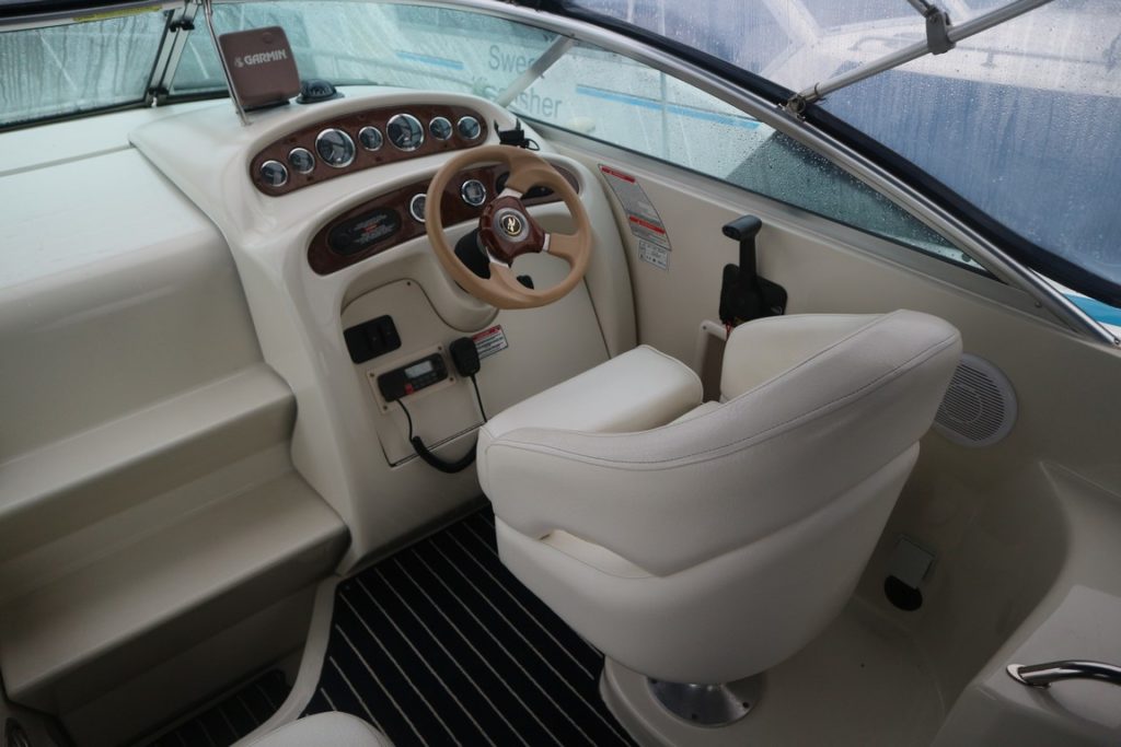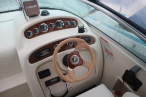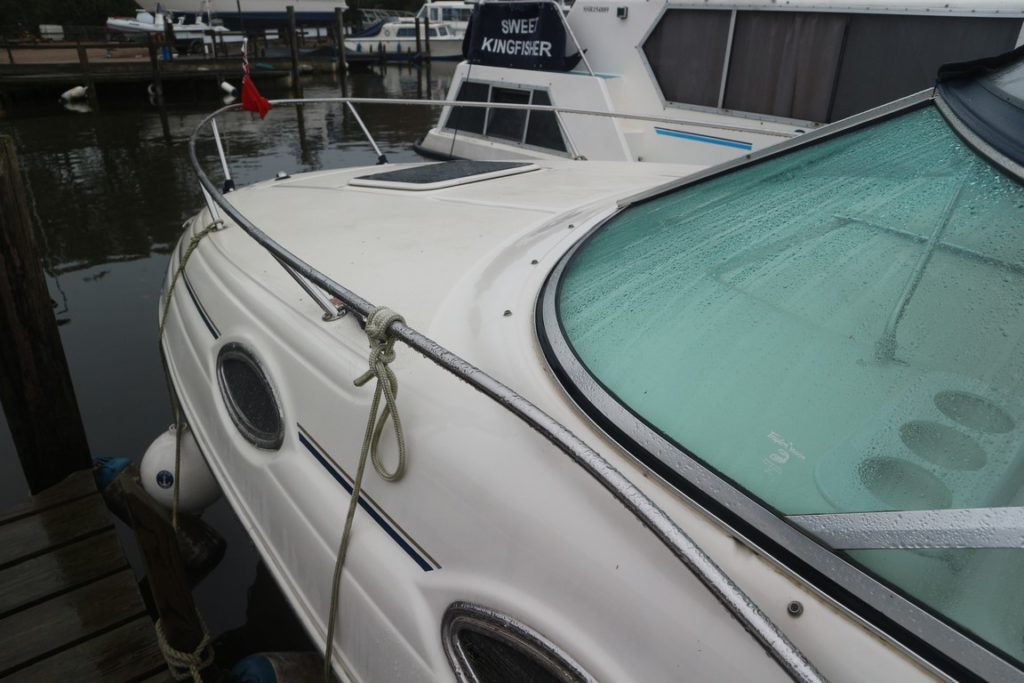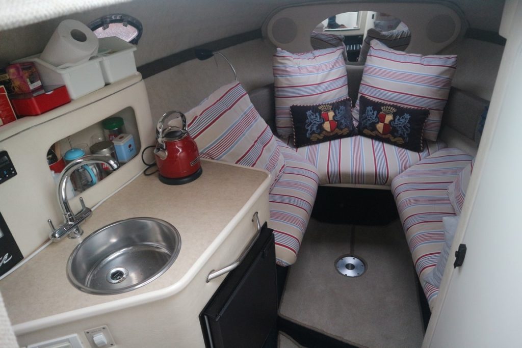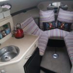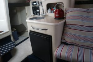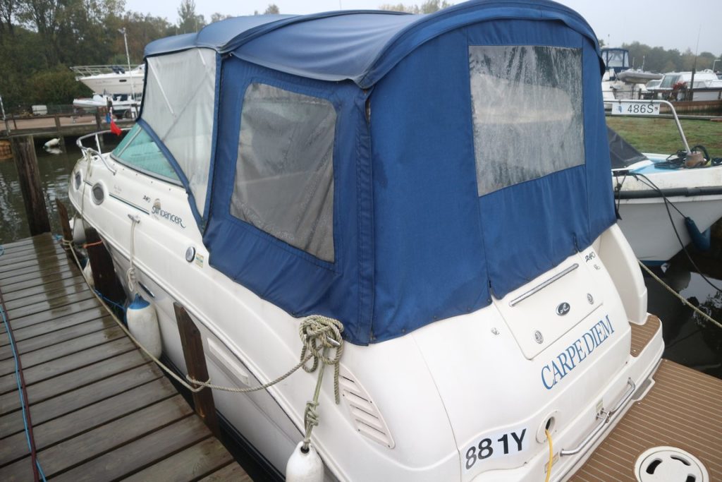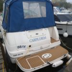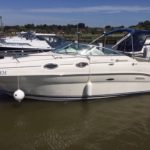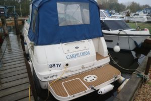 SEARAY 240 SUNDANCER – 2001 – Powered by a single Volvo KAD32 170hp diesel. 4 berths with one toilet and one shower. Specification to include; warm air heating, holding tank, trim tabs, Garmin GPS and shore power supply with battery charger. Only 2 owners from new with under 500 engine hours. Clearly very well kept both mechanically and cosmetically by her current and previous owner. A much sought after small diesel sports cruiser with a very low air-draft for greater inland access.