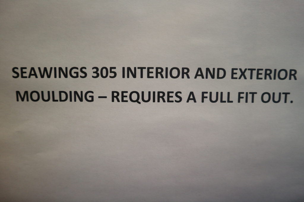 One set of Seawings 305 exterior and interior mouldings, moulded by Alpha Craft in 2006, requires a full fit out. Photograph coming soon…