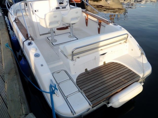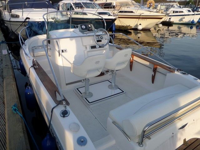 SESSA KEY LARGO 20 – 2005, Nanni 4.150 (37.5hp) diesel, 2 berths, sunpad cushions, helm and navigators seats, cool box, deck shower, bimini cover. A great alternative to a traditional tender or fishing launch, with the added bonus of a cuddy cabin. The Sessa Key Largo provides fun for all the family.