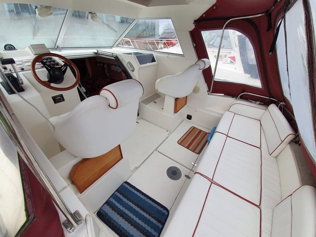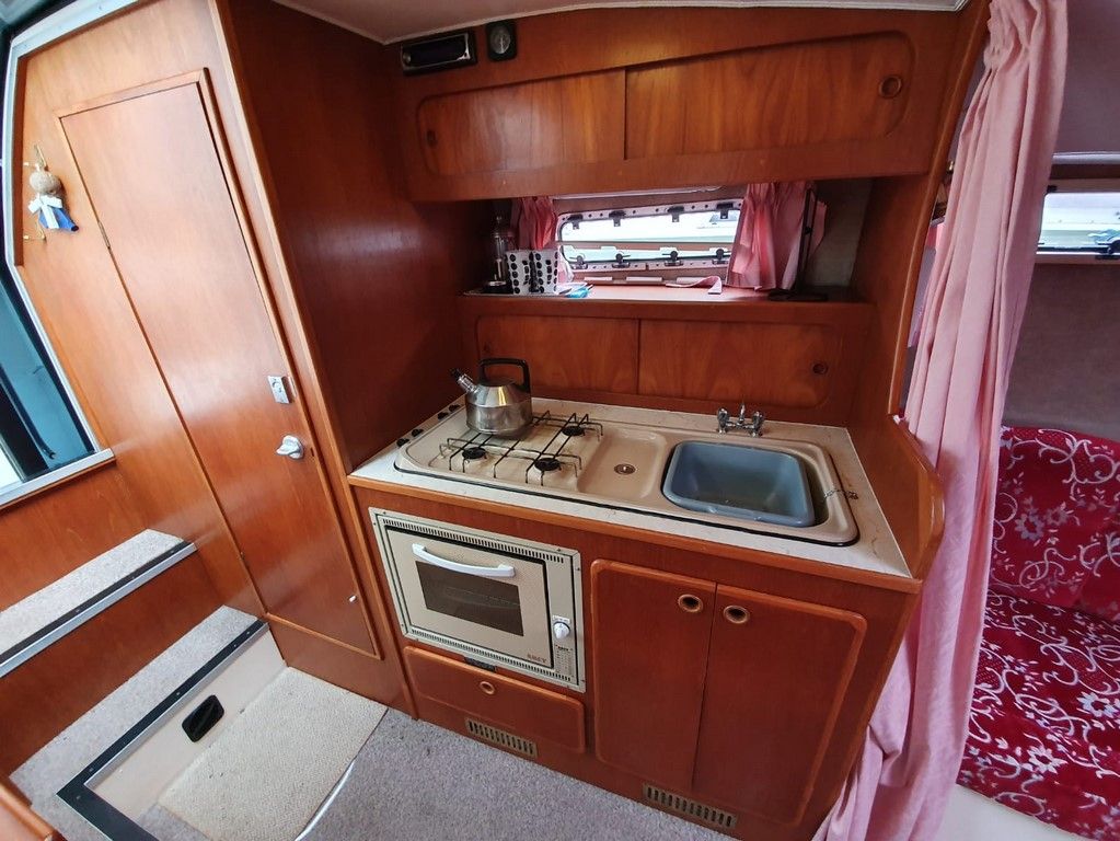 SHADOW 26 – 1998 – Powered by a single Beta 43hp diesel through a shaft. 4 berth accommodation with toilet and shower. Specification to include; Mikuni warm air heating, holding tank, 12v system, calorifier, engine instrumentation, oven, grill and 4 burner hob. Used to cruise the Broads throughout current ownership, single diesel economy with sought after shaft configuration!