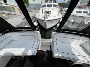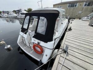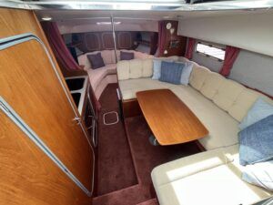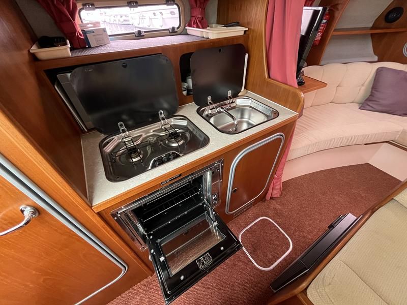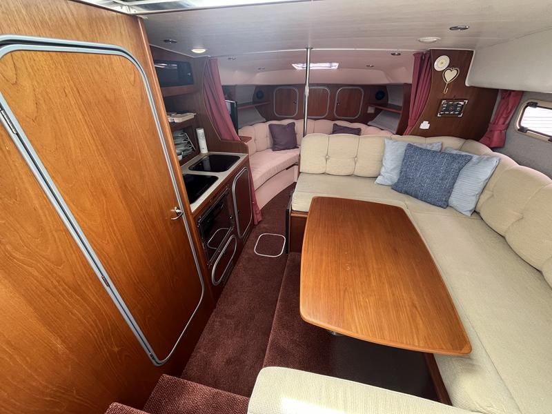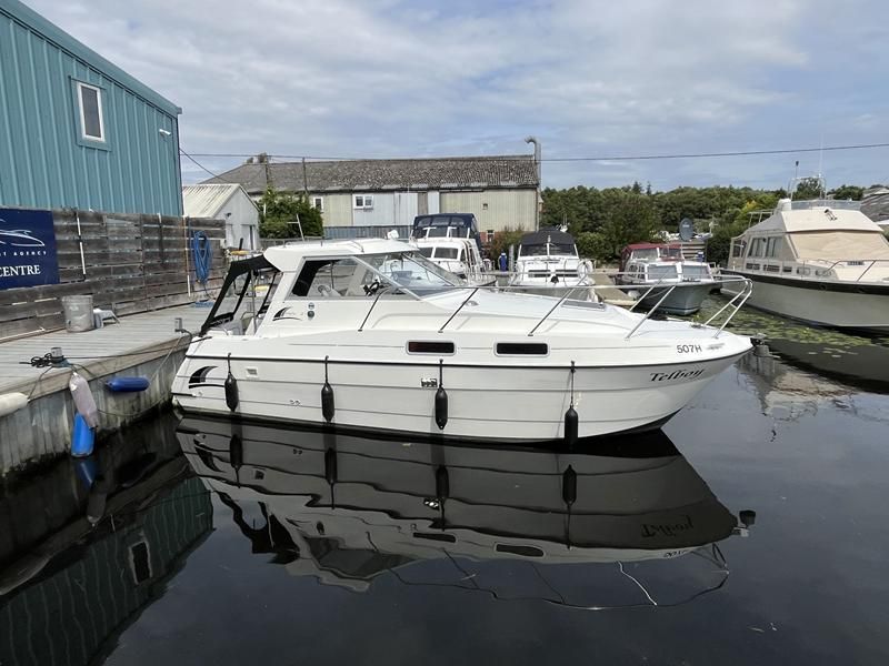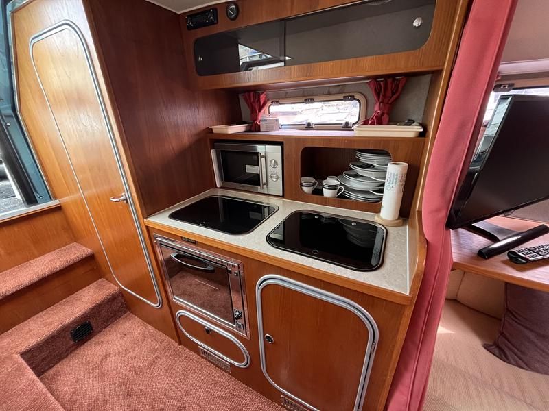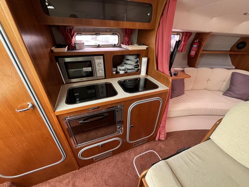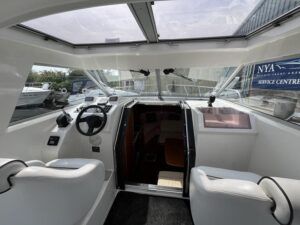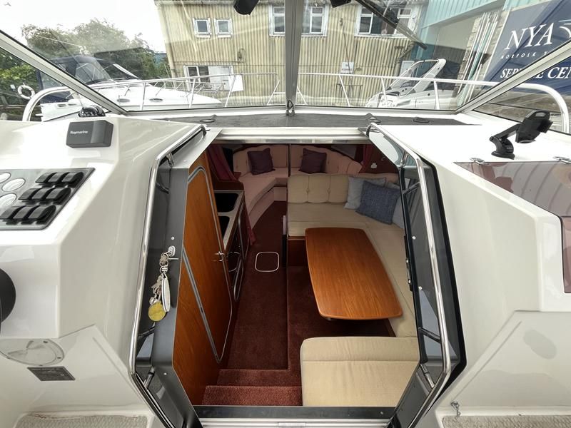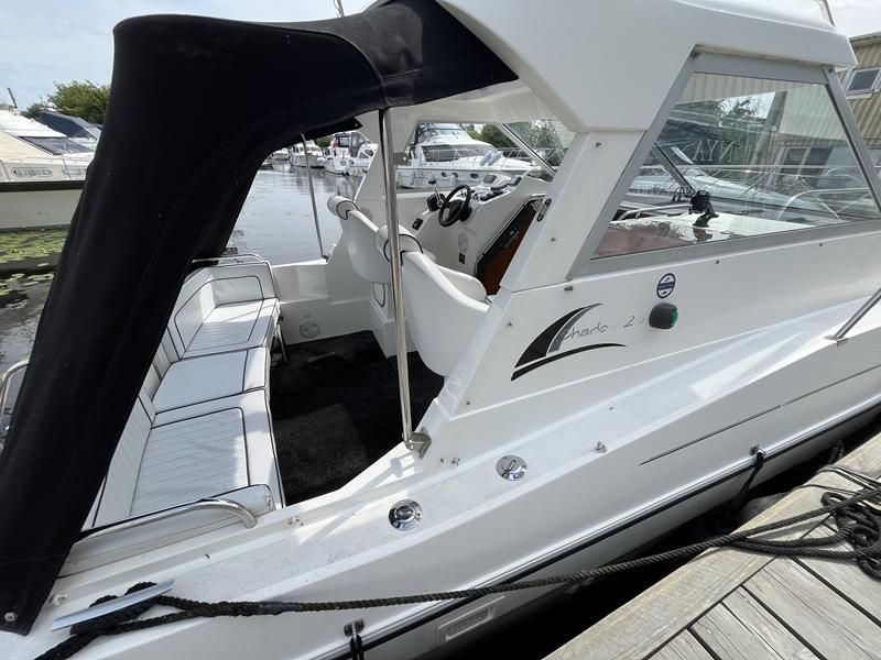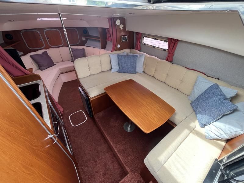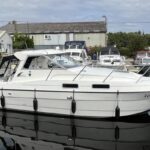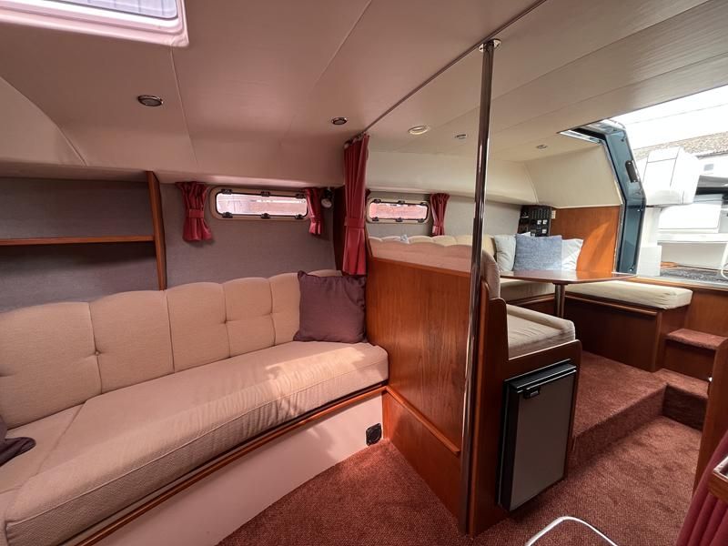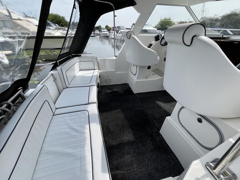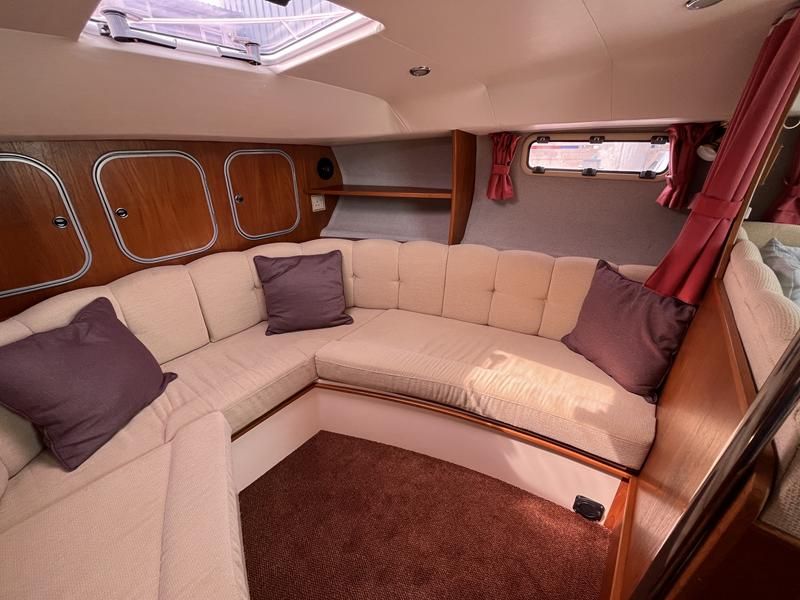 Shadow 26 – 2005 – Powered by a single Beta BV1903 43hp diesel engine through shaft. Spacious 4 berth accommodation with electric flush W/C & shower. Modern fitted galley. Specification including Bow thruster, warm air heating, electric windlass, shore power, immersion heater, battery charger, inverter, Raymarine speed and depth logs, Bathing platform and transom door entrance to cockpit. BSC 03/29. A well presented and popular Norfolk built ‘sport style’ river cruiser with a desirable diesel engine and shaft drive configuration.