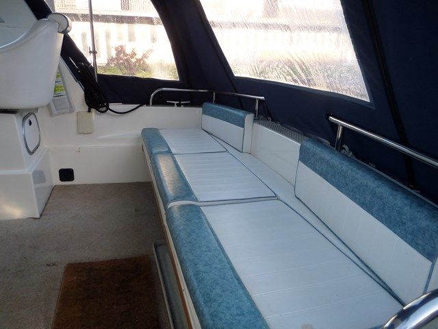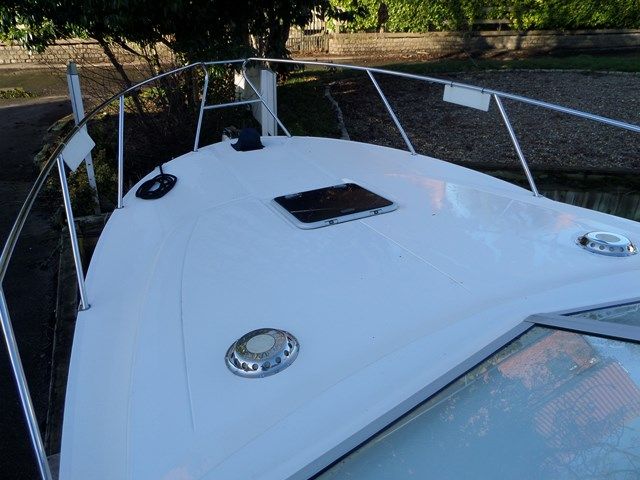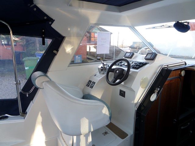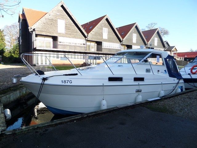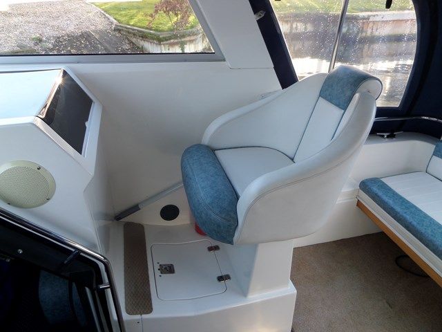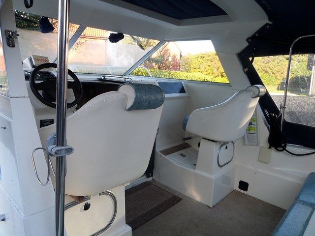 SHADOW 26 – 2002, 1 x Beta 43hp diesel engine on shaft drive, 4 berths in 1 open plan cabin, 1 x electric toilet & shower, Boat Safety Certificate until: 2015. Shore power, battery charger, hard top roof & aft canopy, hot air heating system, holding tank and much more! In lovely condition and offers great accommodation for a 26 foot river cruiser!