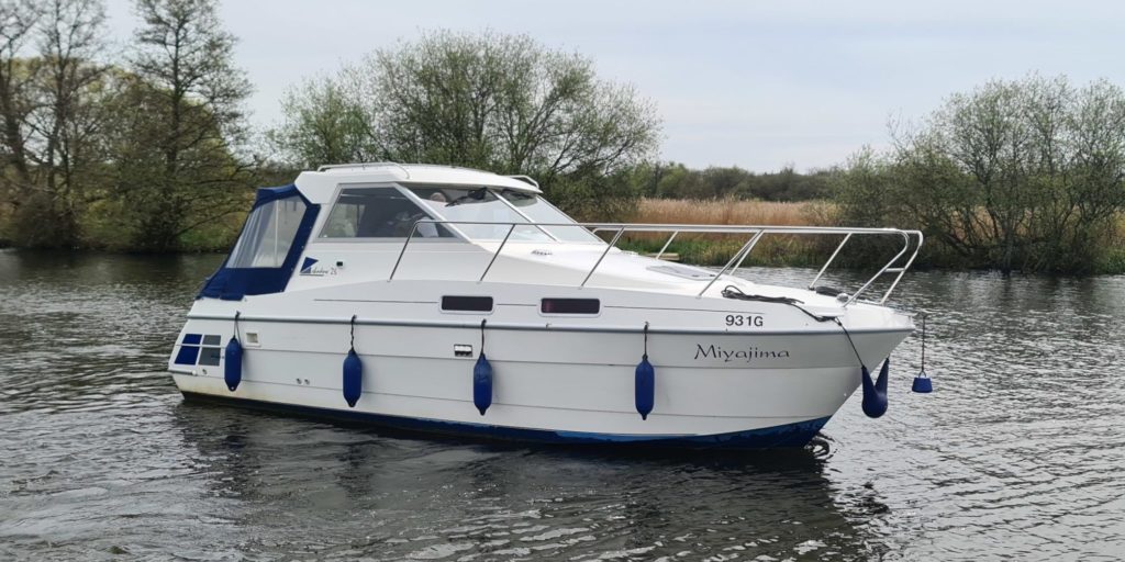 Shadow 26 Executive – 2004 – Single Beta 43hp diesel on a shaft drive. Up to 6 berth accommodation. Specification to include; BCS Bowthruster, shore power, Lofrans electric anchor winch, Mikuni warm air heating, Smev gas oven, grill and two hob burner, Raymarine speed and depth logs. Boat Safety Certificate 22 June, 2024. A one owner boat from new, built for a discerning customer, “Miyajima” is a boat that has been clearly cherished by her owners.