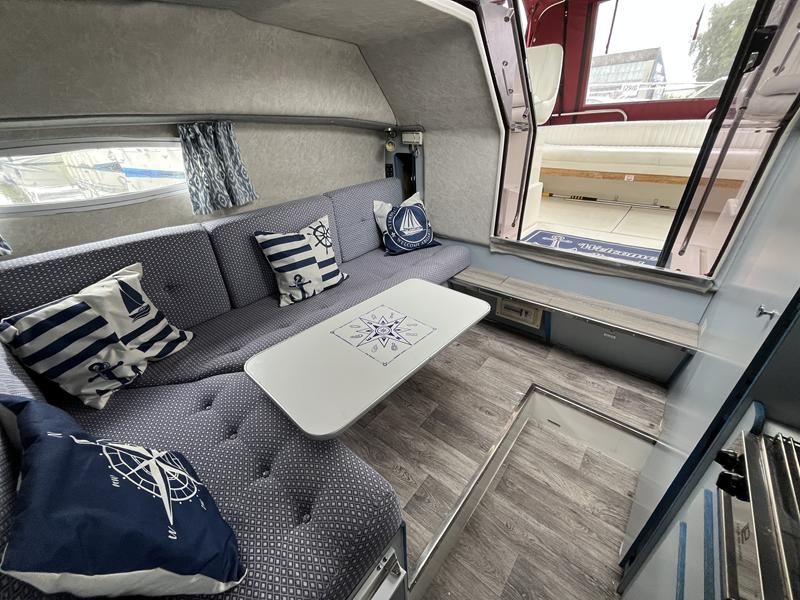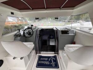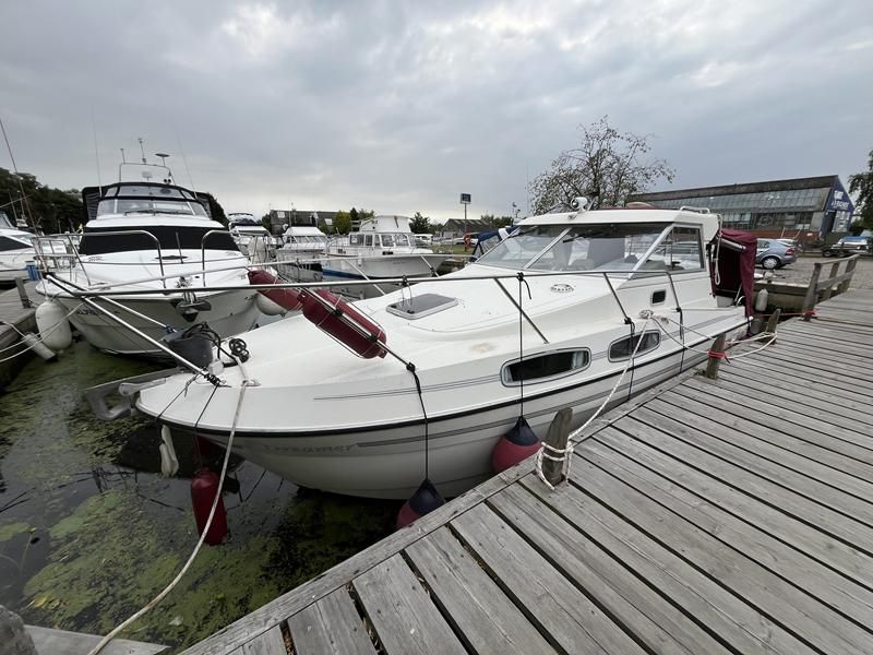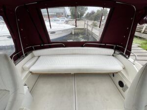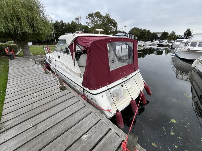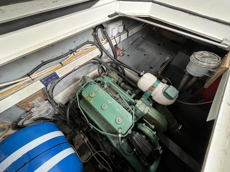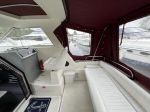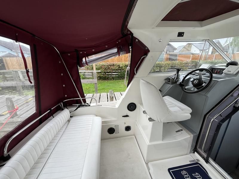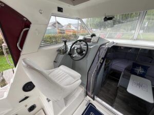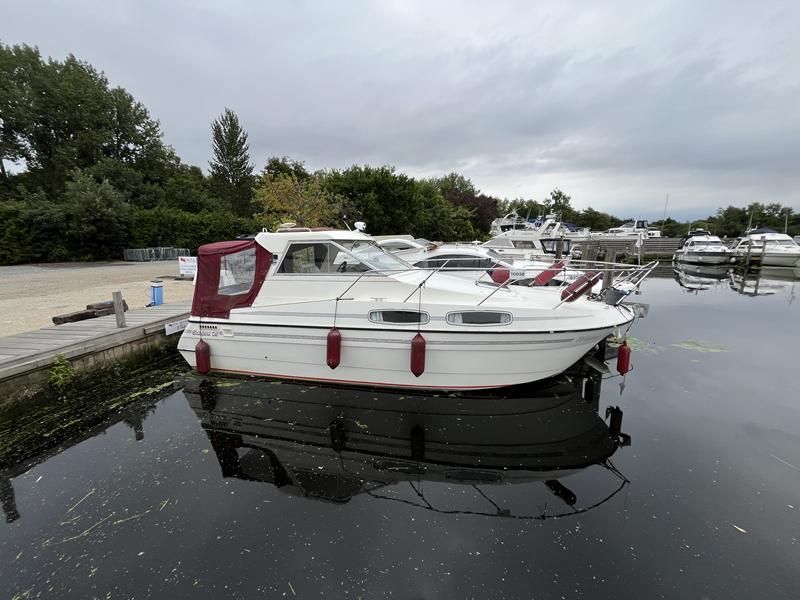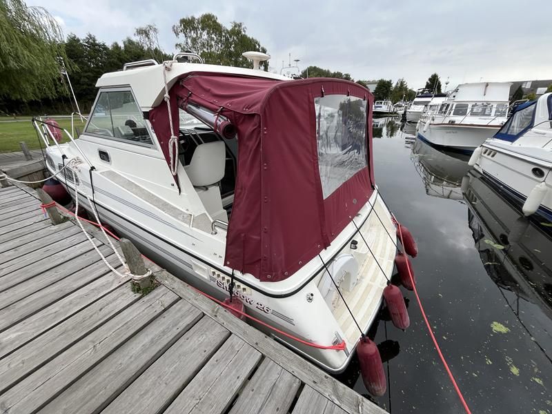 Shadow 26 Hard Top – 1988 – Powered by a Single Volvo 2003T 43hp diesel engine through shaft. 4+2 berth accommodation in main cabin and occasional cockpit berth with 1 x toilet/shower compartment. Specification including Shore power, battery charger, holding tank, calorifier, recent canopy in 2023. BSC 06/28. A tidy river cruiser spacious accommodation for her size & shaft drive with diesel economy, ideal for exploring the inland waterways.
