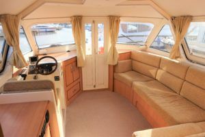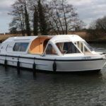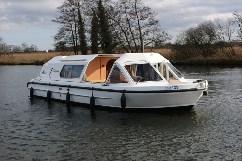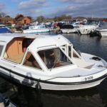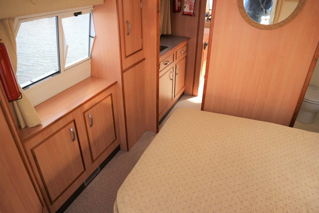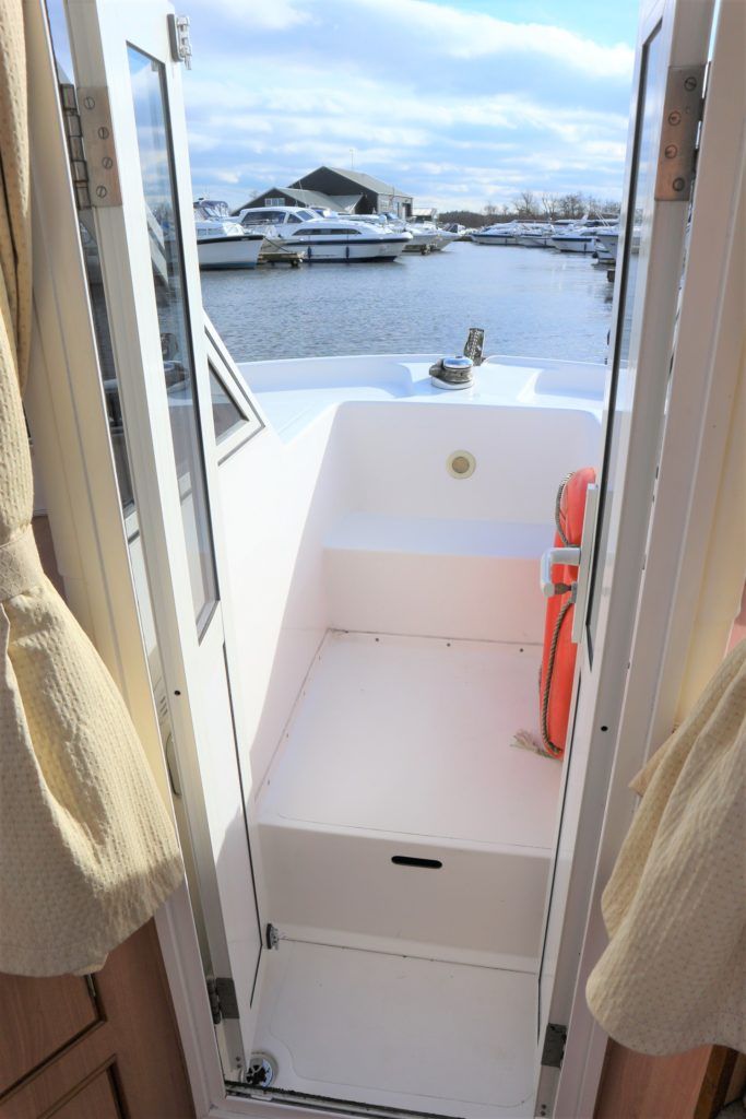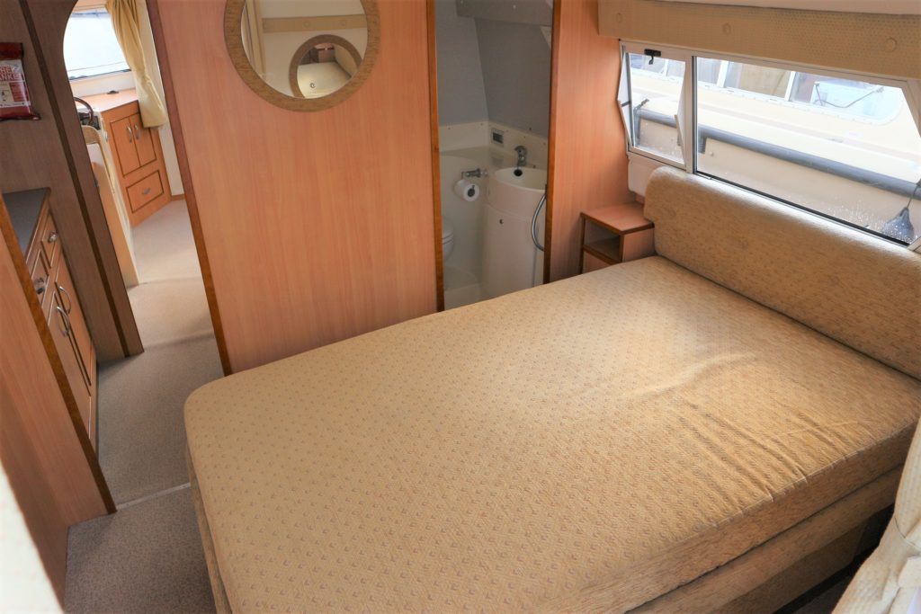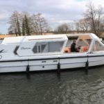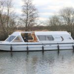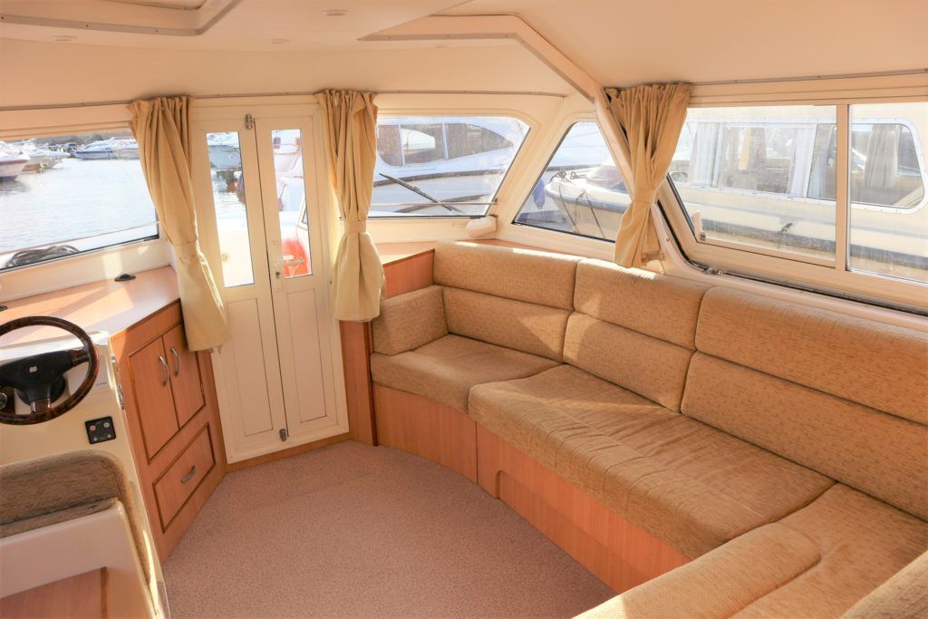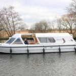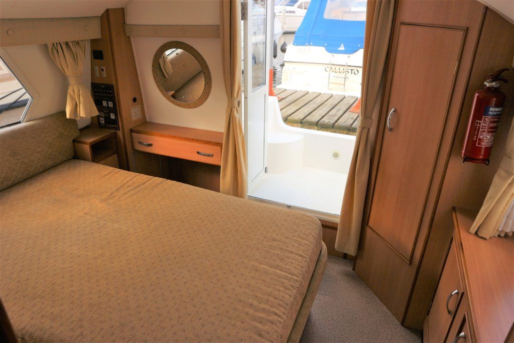 SHADOW/ALPHA 31 – 2010 – Powered by a Beta 30hp diesel engine. 4 berth accommodation in master island double en-suite cabin and saloon. Galley with full cooker, microwave, fridge & sink. High specification including bow thruster, electric windlass, shore power, battery charger, inverter, immersion heater, warm air heating, electric toilet, reversing camera, speed & depth log, split sliding roof over saloon, BSC 10/22. A lovely example of this popular style river cruiser with a high specification and spacious accommodation.