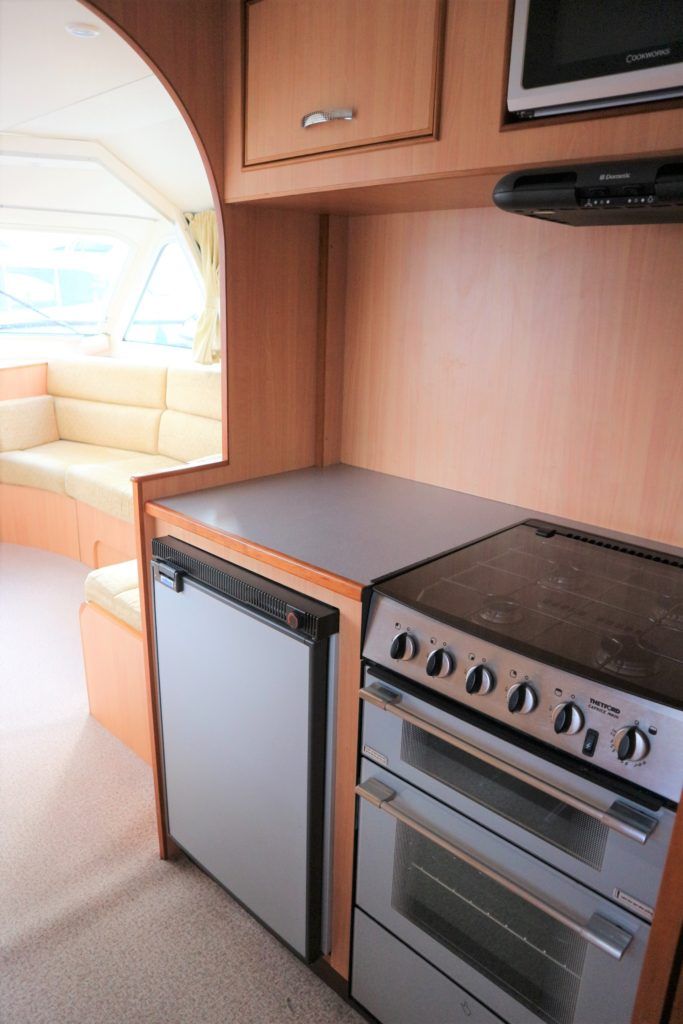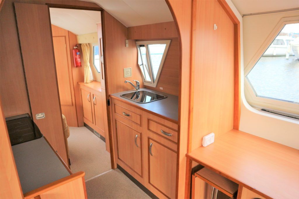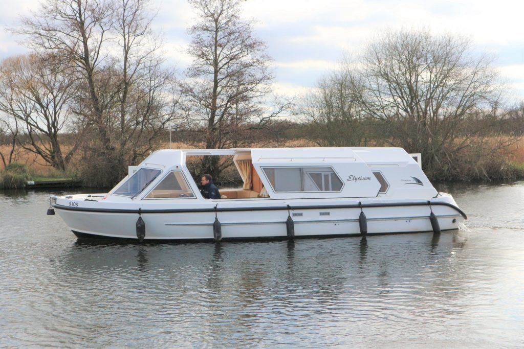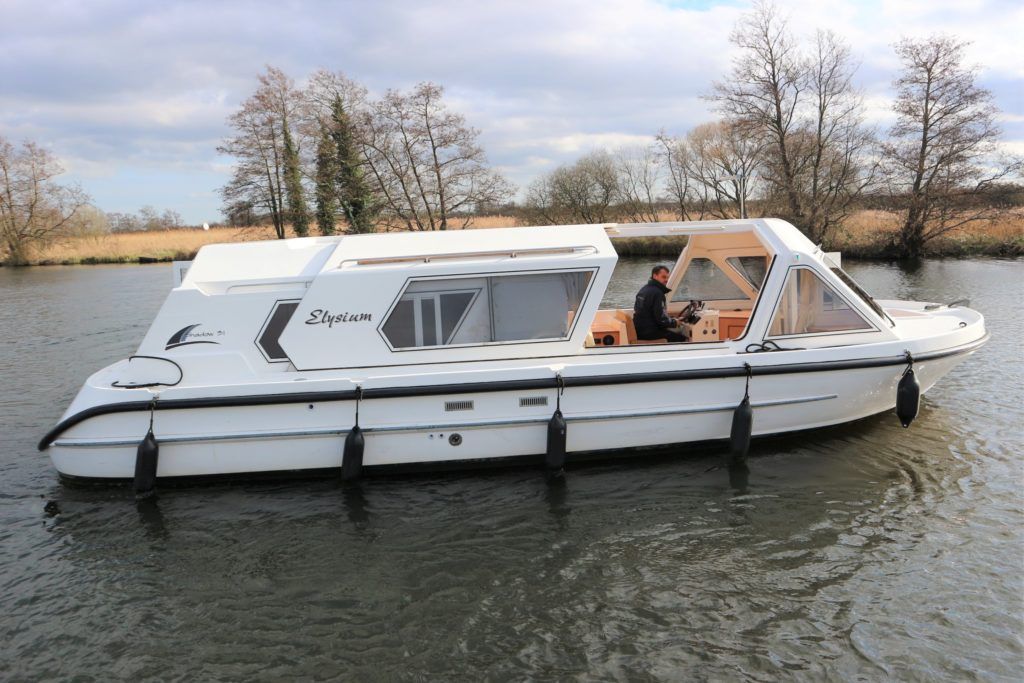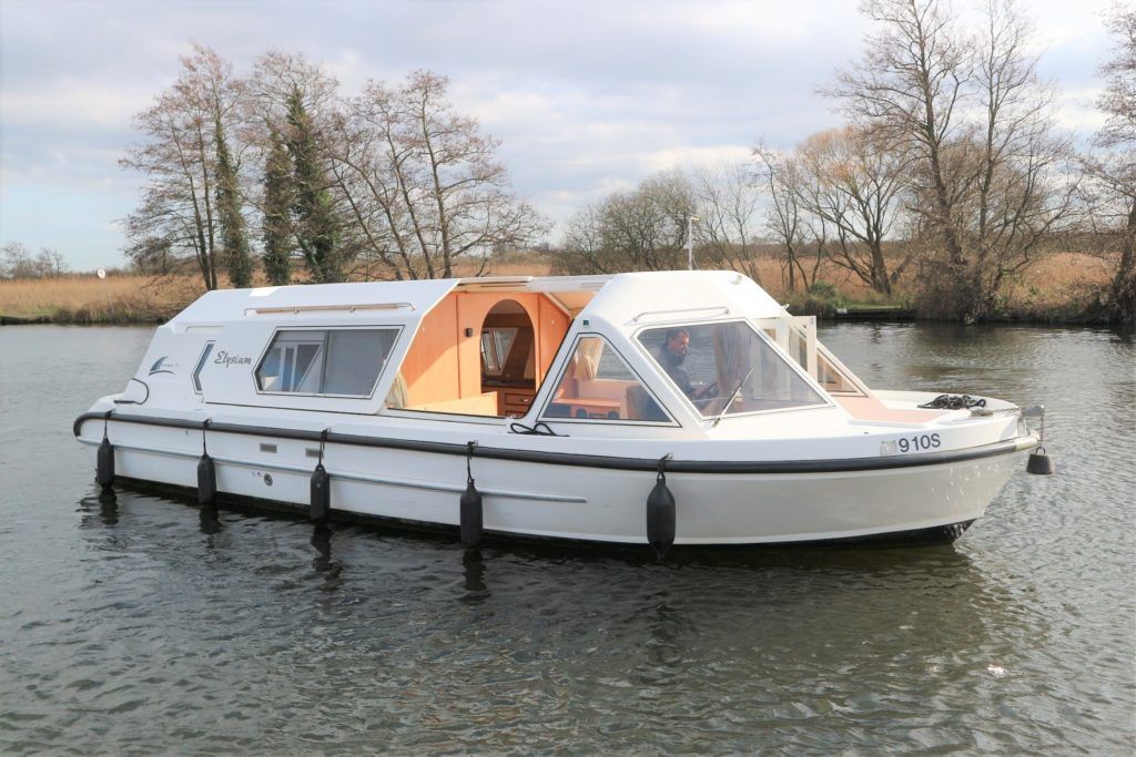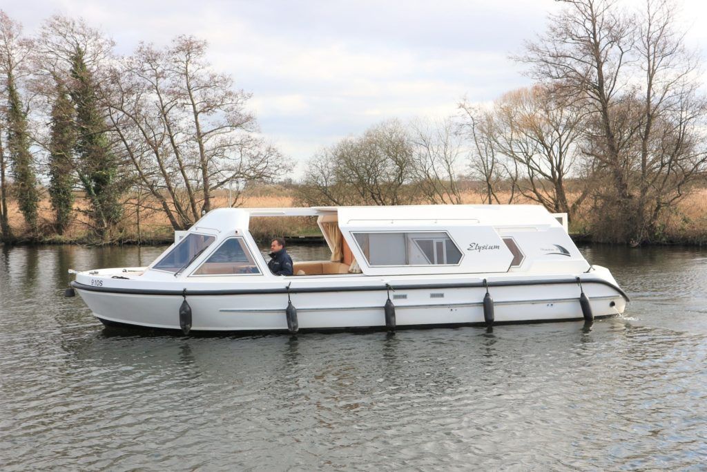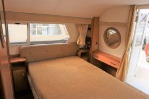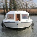 SHADOW/ALPHA 31 – 2010 – Powered by a Beta 30hp diesel engine. 4 berth accommodation in master island double en-suite cabin and saloon. Galley with full cooker, microwave, fridge & sink. High specification including bow thruster, electric windlass, shore power, battery charger, inverter, immersion heater, warm air heating, electric toilet, reversing camera, speed & depth log, split sliding roof over saloon, BSC 10/22. A lovely example of this popular style river cruiser with a high specification and spacious accommodation.