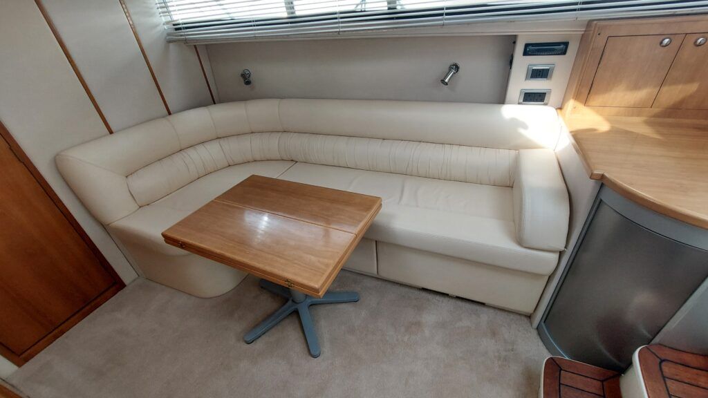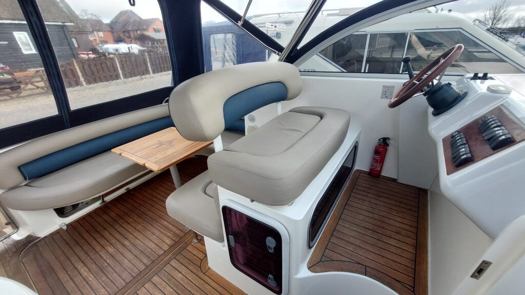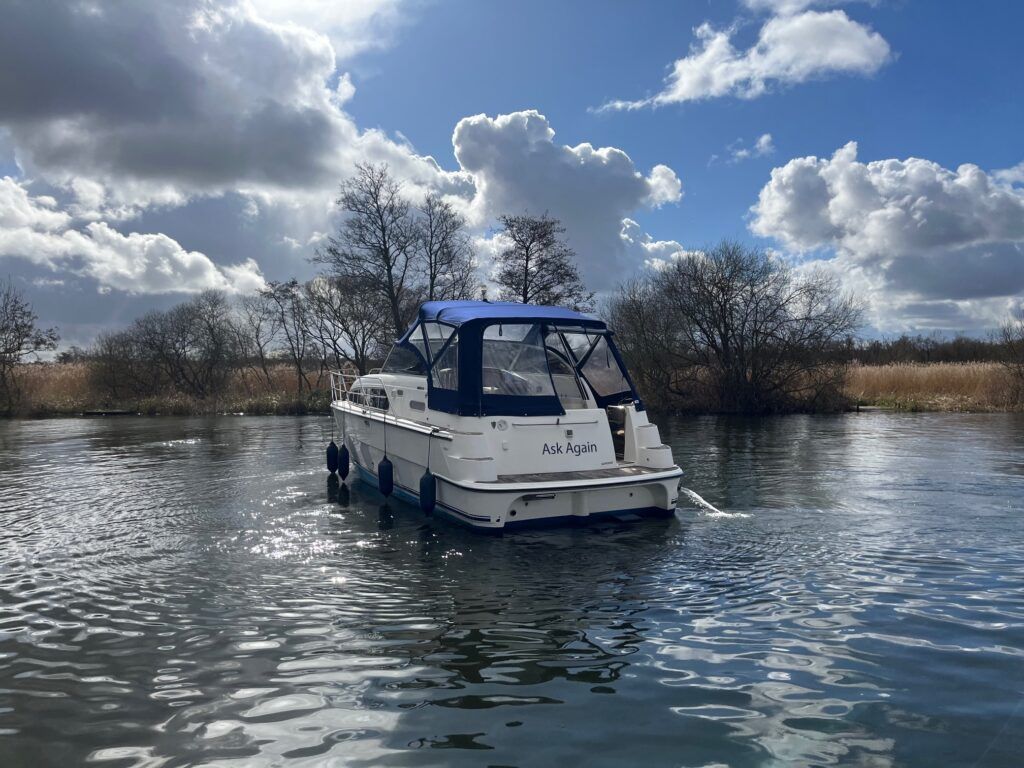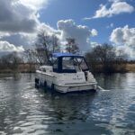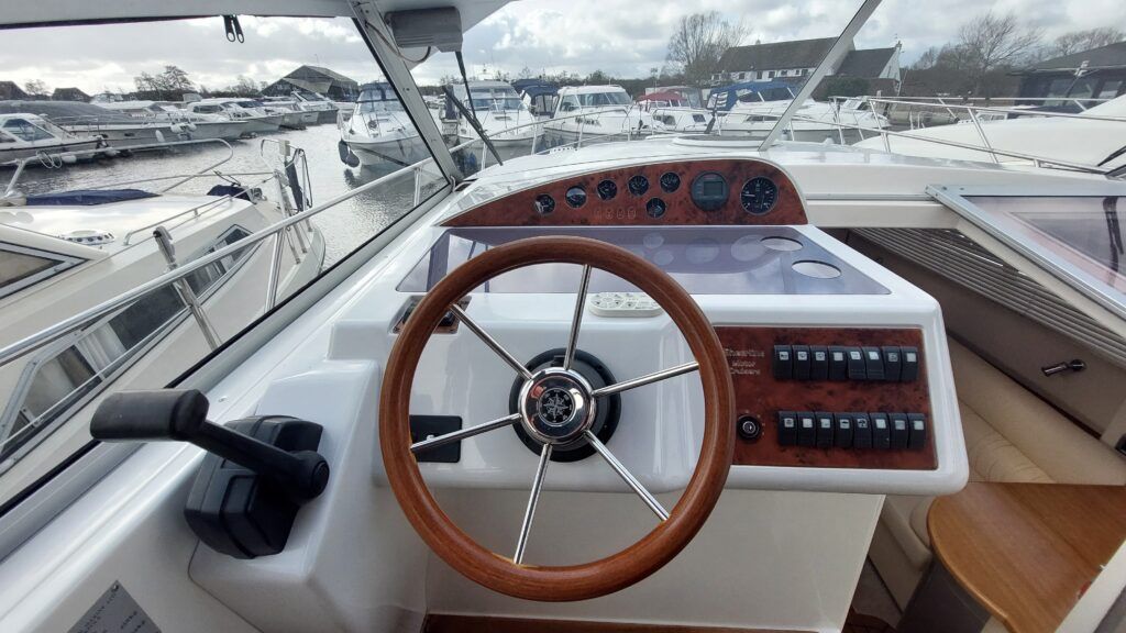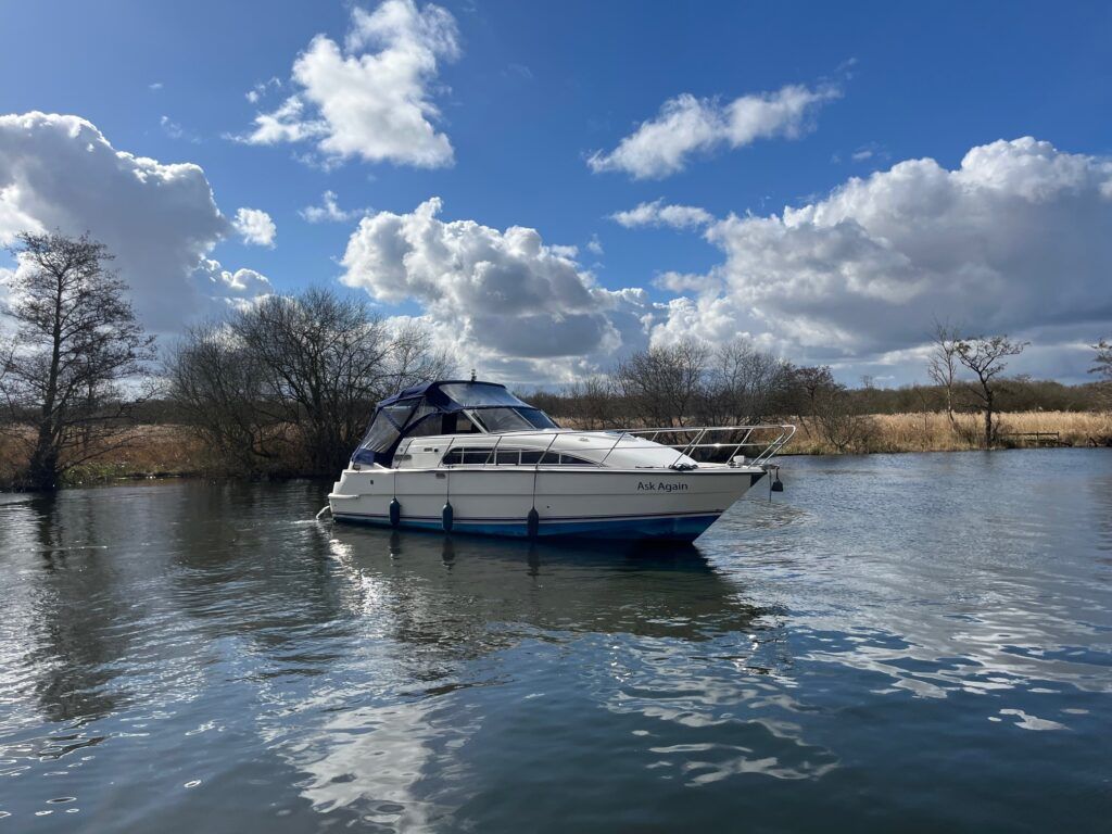 Sheerline 1020 – 2004 – Single Nanni Kubota 130hp diesel engine through a shaft. 4/6 berth accommodation with a single toilet/shower compartment. Specification to include; bow and stern thrusters, 6.5kva Fischer Panda generator, Combi microwave oven, cockpit griddle/barbecue, warm air heating etc, leather saloon upholstery, the list goes on. “Ask Again” has a huge specification and is a very nice example of these sought after craft. BSC 23/05/26