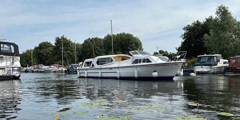 Sheerline 1070 – 2001 – Powered by a Nanni 4.220HE 50hp diesel engine through a shaft. Up to 6 berth accommodation with separate toilet & shower compartments. A very high specification including bow and stern thrusters with remote control, electric windlass, electric sliding roof, folding windscreens, warm air heating, shore power, battery charger, immersion heater and more! BSC 08/26. “Speedwell” is a very presentable example of these sought after centre-cockpit cruisers. NYA Stock – Sold with 3 month engine & gearbox warranty.