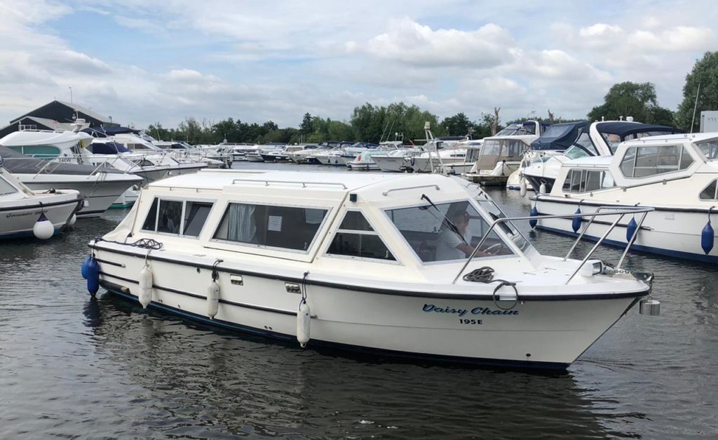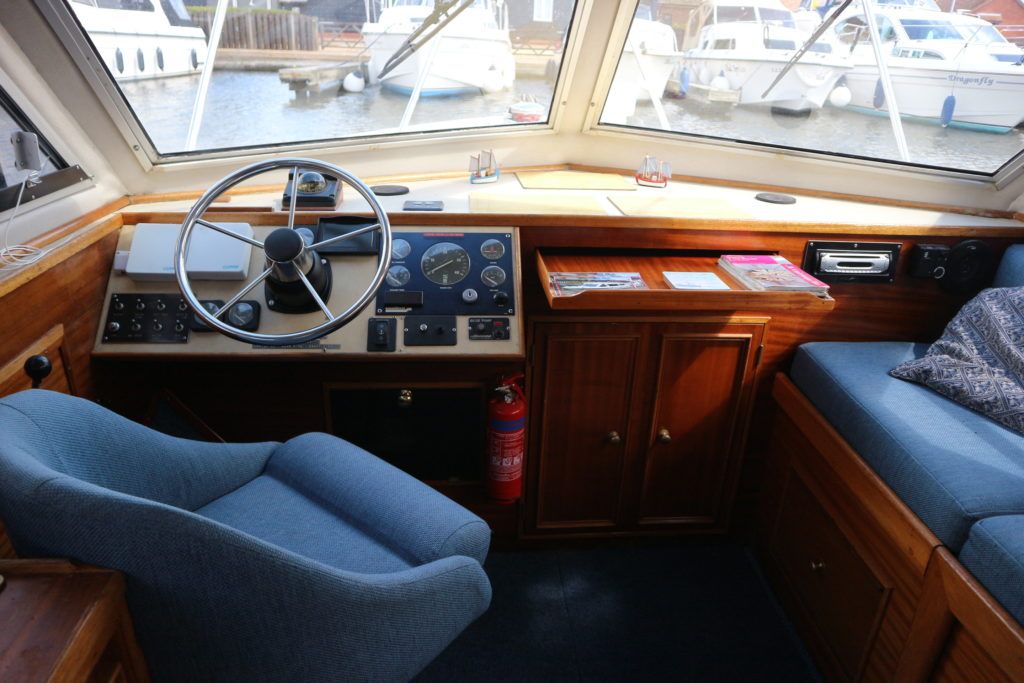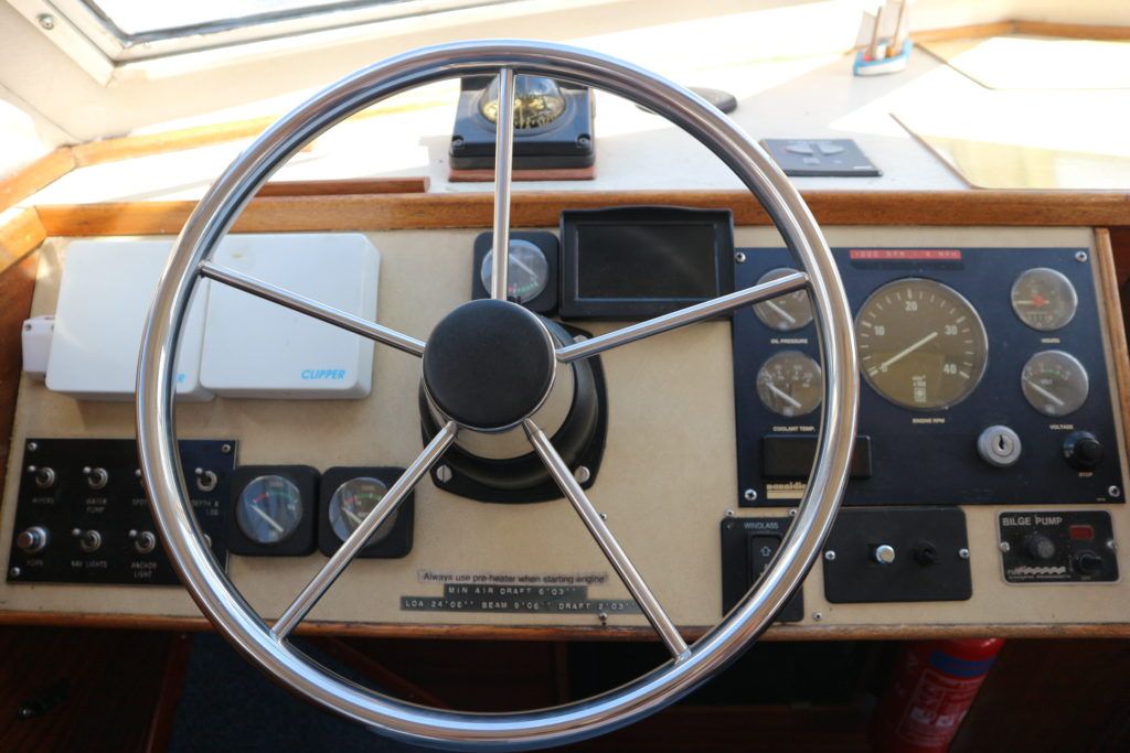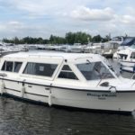 SHEERLINE 740 – 1991 – Single Nanni 4.150HE 35hp Diesel engine. 4 berths in 2 cabins with 1 toilet to holding tank and shower. Battery Charger, Bowthruster, Electric Anchor Winch, Warm air heating system, Sliding roof, Shore power. Very low airdraft boat ideal for inland waterways and in excellent condition.