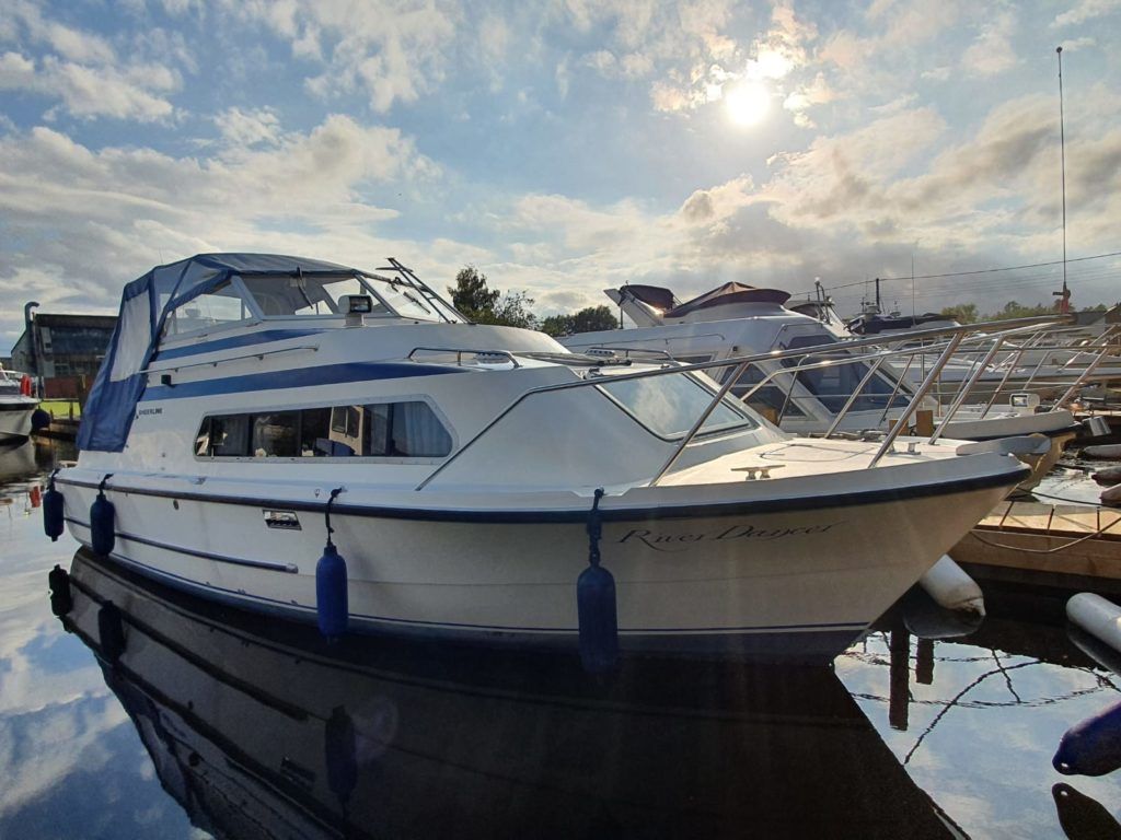 SHEERLINE 740 AFT COCKPIT – 1991 – Powered by a single Nanni 43hp diesel through a shaft – 4 berth accommodation with toilet and shower. Specification to include; Warm air heating, holding tank, shore power supply with 240v sockets, battery charger and immersion. BSC 10/23. Folding screens making for a very low air draft, ideal for exploring extensive inland waterways. Presented in fantastic order throughout, used to cruise the river Ouse and has clearly been loved by current owner!