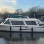 Sheerline 740 – 2016 – Nanni 50hp Diesel engine, 2 berth accommodation, Bow thruster, Stern Thruster, Electric windlass, heating, toilet to holding tank, , Boat Safety Certificate May 2025, A high spec modern day cruiser with low air draft perfect for exploring inland waterways.
