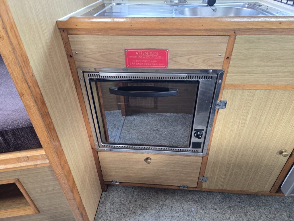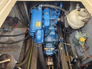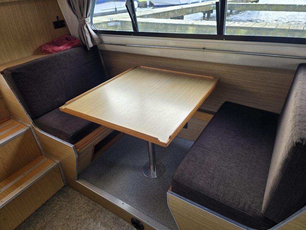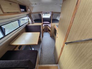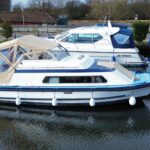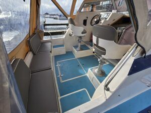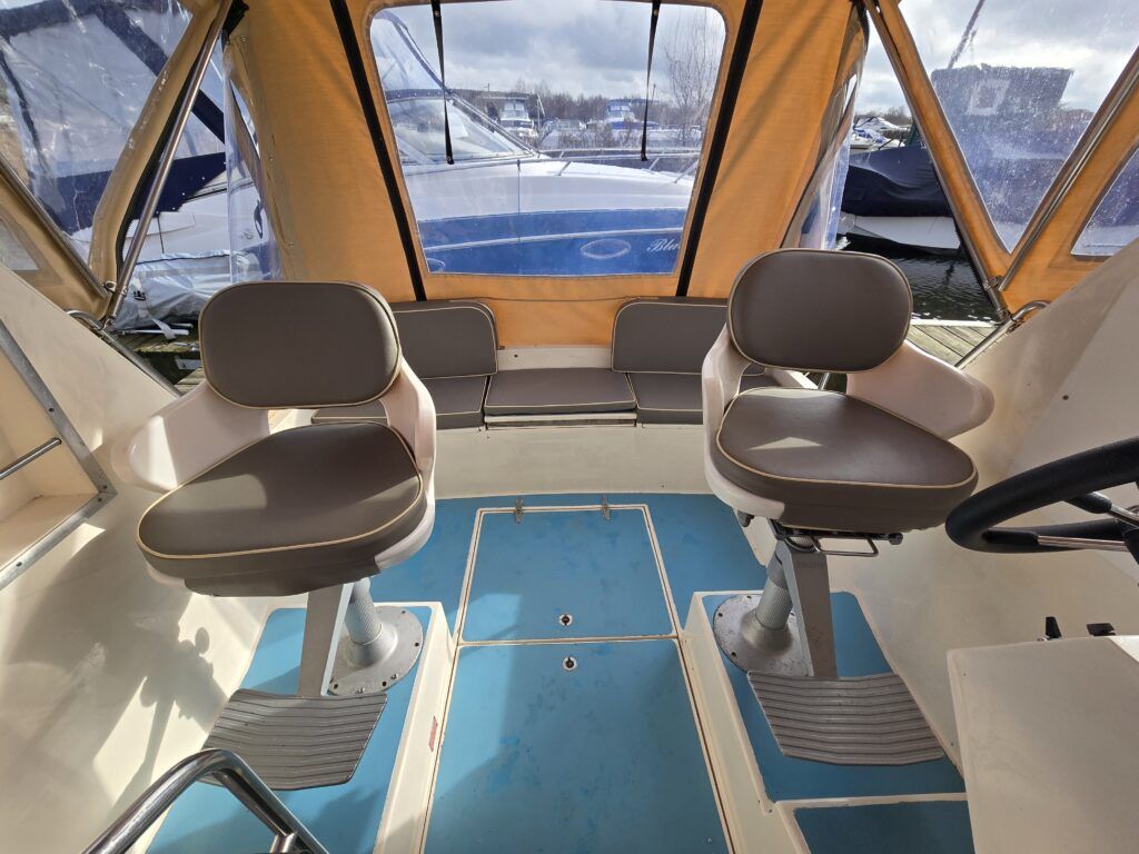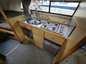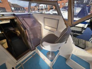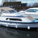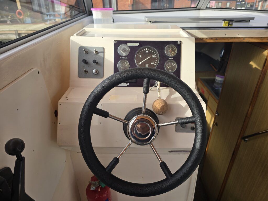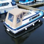 Sheerline 740 Aft cockpit – 1991 – Powered by a Nanni N4.38 through a shaft (fitted 2024). 3 berth accommodation with a separate toilet & shower compartment. Specification to include; warm air heating, folding windscreens, full canopy, holding tank, electric toilet, inflatable dinghy, 12v system with TV, fully equipped galley with 4 burner gas hob and separate cooker. Serviced 2025. Antfouled 2024. A very popular style of boat, featuring a modern Nanni diesel engine and low air draft – an ideal choice for those looking to get started on the inland waterways.