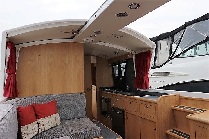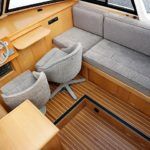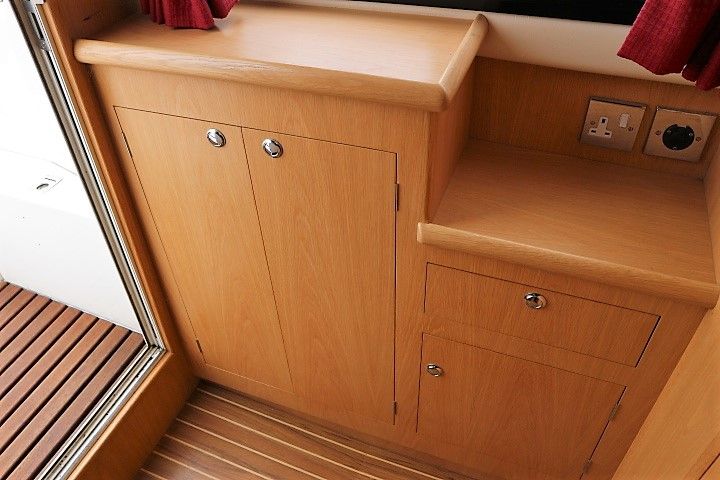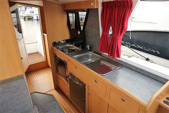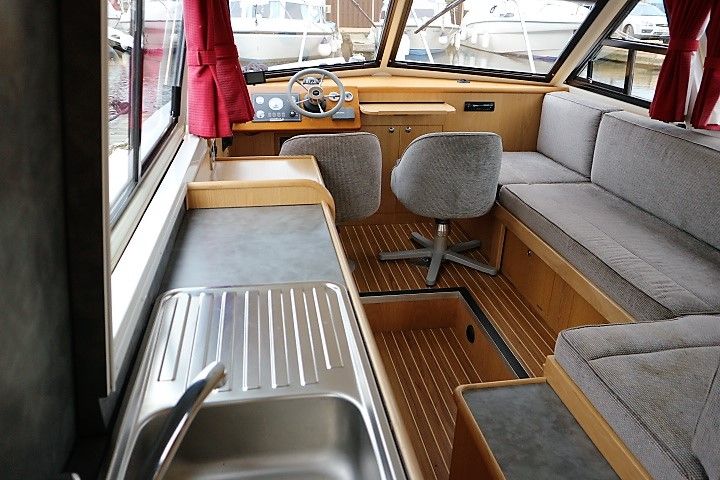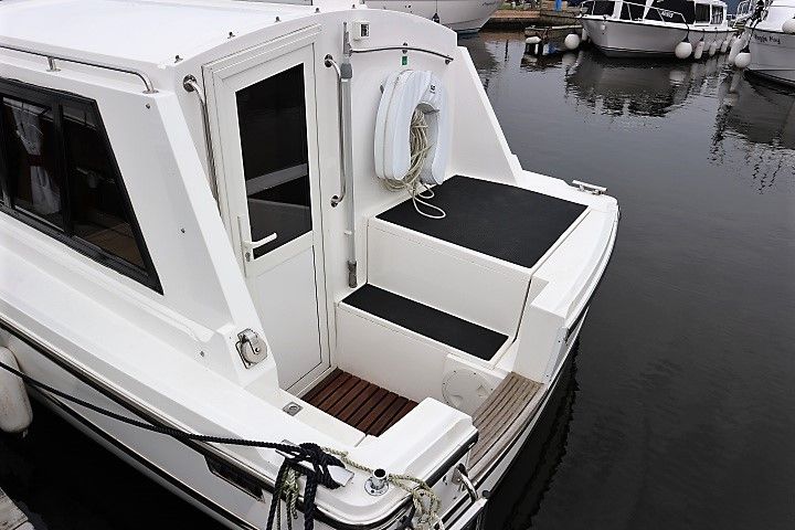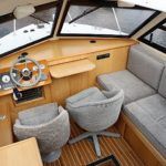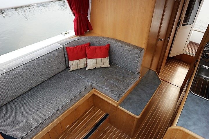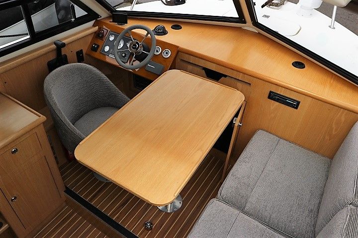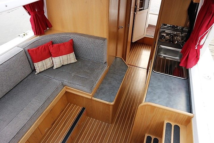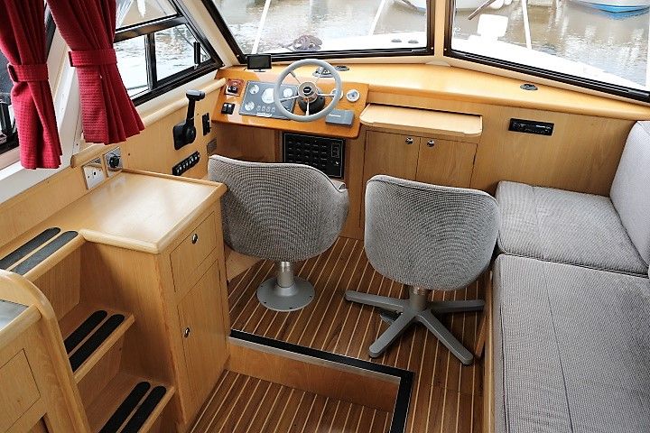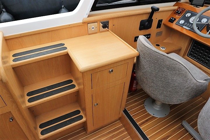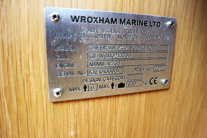 SHEERLINE 740 FINESSE – 2011 – Nanni N4.38 (37.5hp) diesel engine. 3 berth accommodation in cabin and Saloon with 1 x electric toilet & shower. Comprehensive spec including bow thruster, electric windlass, shore power, battery charger, immersion heater, warm air heating, rear view camera, speed & depth log, split sliding roof, teak & holly flooring. A smart and well equipped example of the popular 740 model with a low airdraft for cruising further afield. NYA STOCK