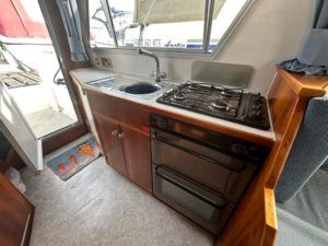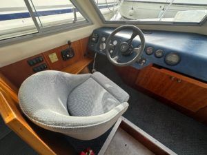 Sheerline 740 Flair – 2000 – Single Nanni N4.150he diesel engine through an hydraulic drive. 2 berth accommodation with a single toilet & shower compartment. Specification to include; shore power, bow thruster, warm air heating, split sliding roof, electric windlass, holding tank, speed and depth logs. “Cobweb” has been in the same family from new and is a lovely example of these popular boats. A very low air-draft makes her a perfect boat for exploring the Norfolk Broads. BSC 10/05/25