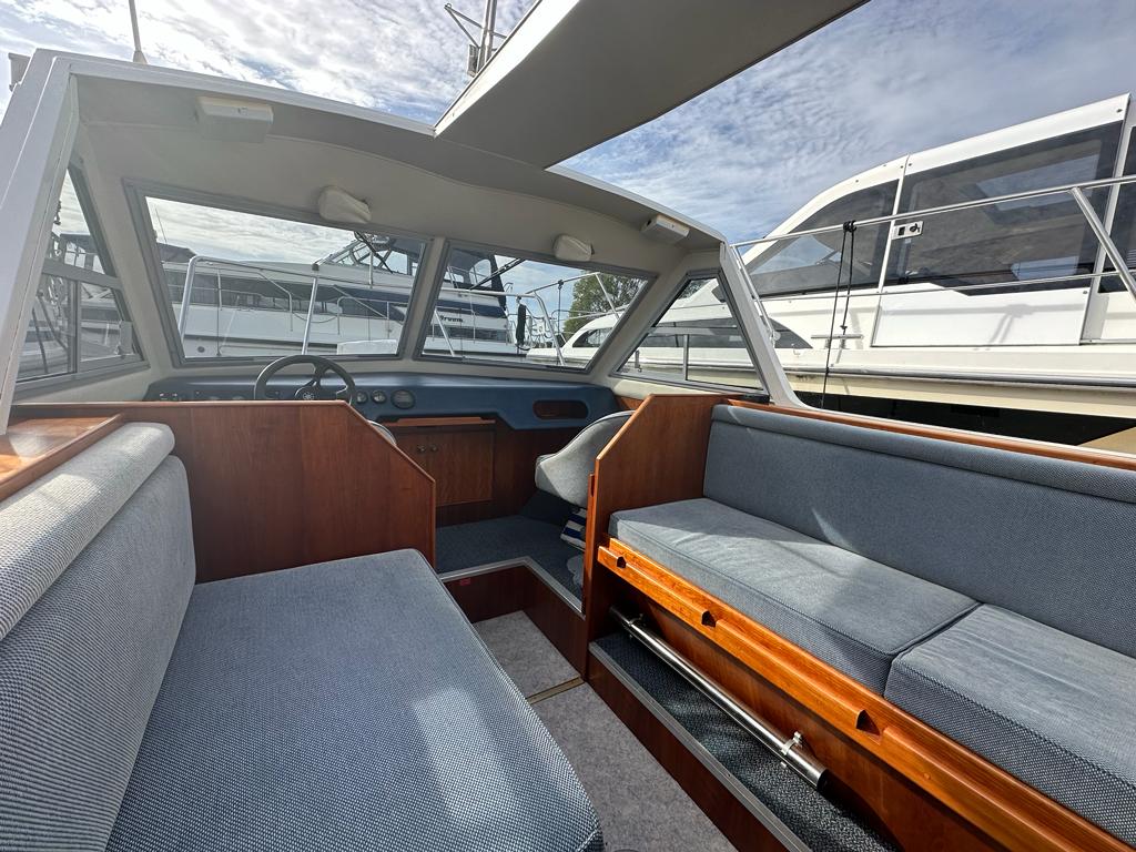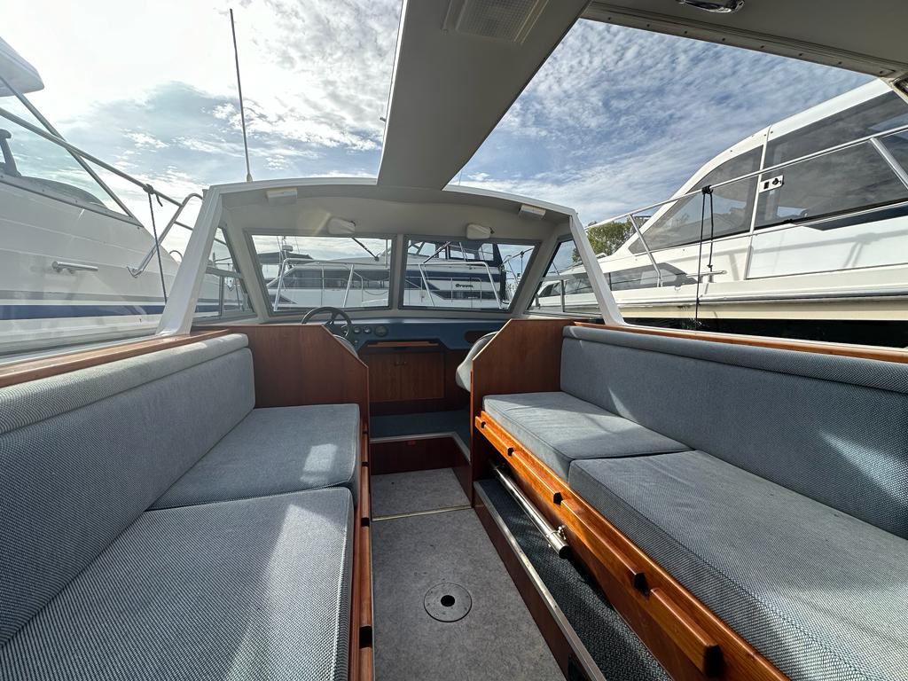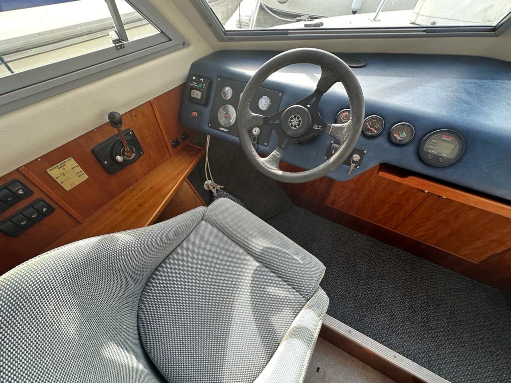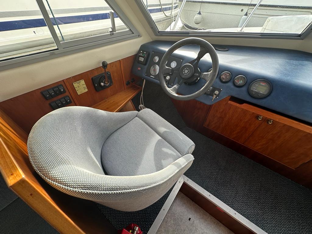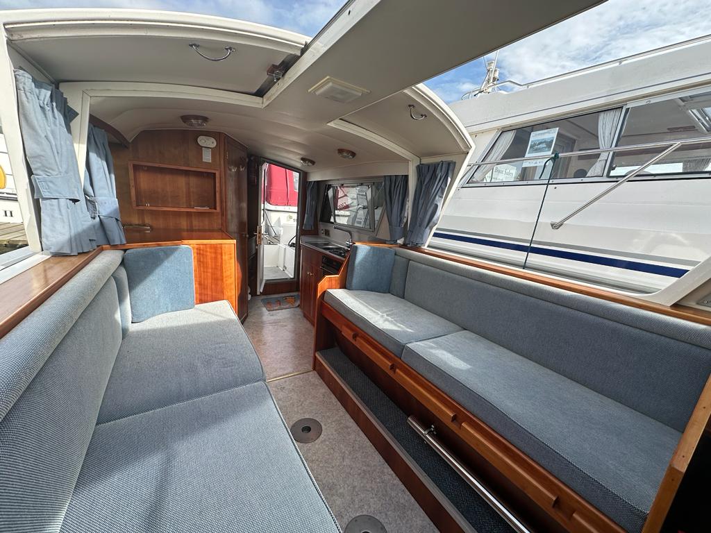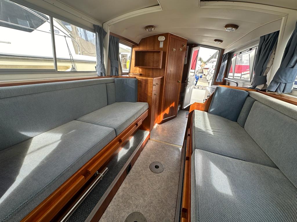 Sheerline 740 Flair – 2000 – Single Nanni N4.150he diesel engine through an hydraulic drive. 2 berth accommodation with a single toilet & shower compartment. Specification to include; shore power, bow thruster, warm air heating, split sliding roof, electric windlass, holding tank, speed and depth logs.  “Cobweb” has been in the same family from new and is a lovely example of these popular boats.  A very low air-draft makes her a perfect boat for exploring the Norfolk Broads.  BSC 10/05/25