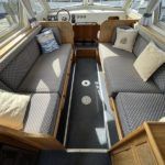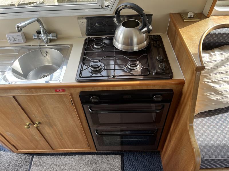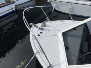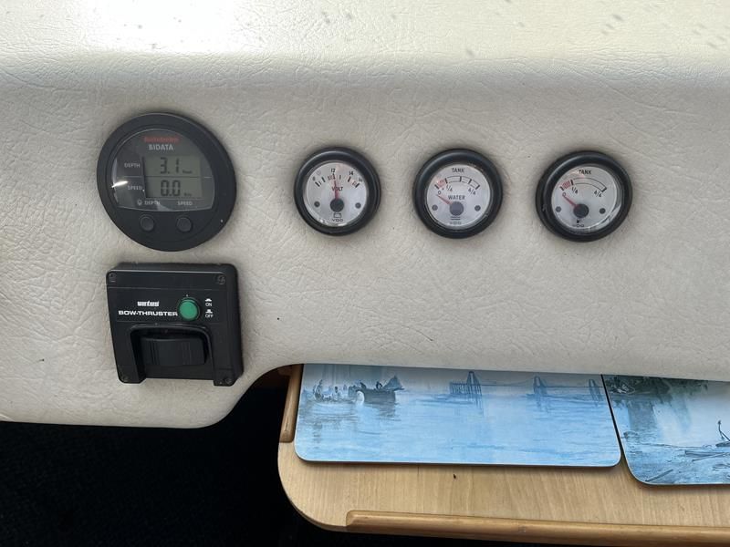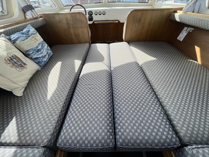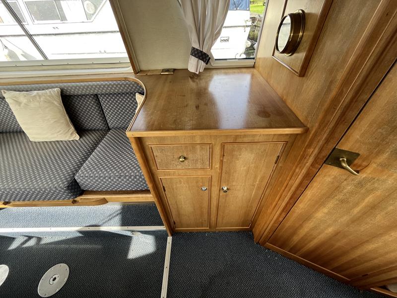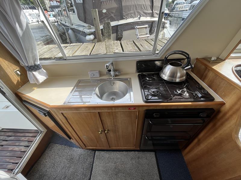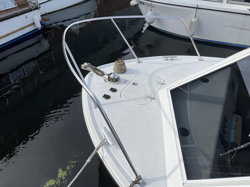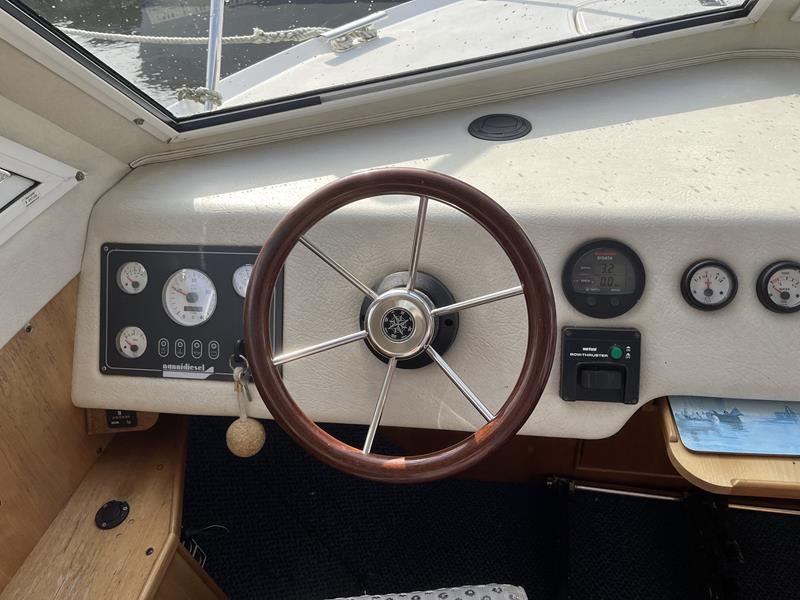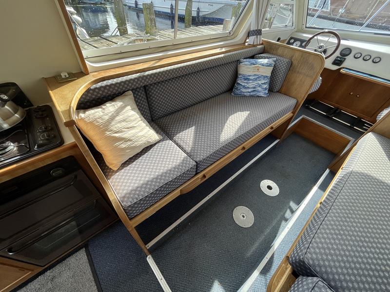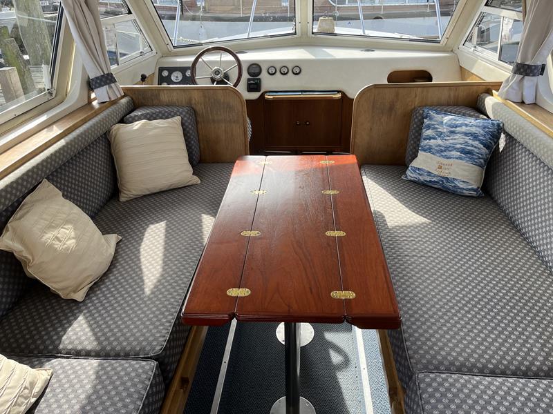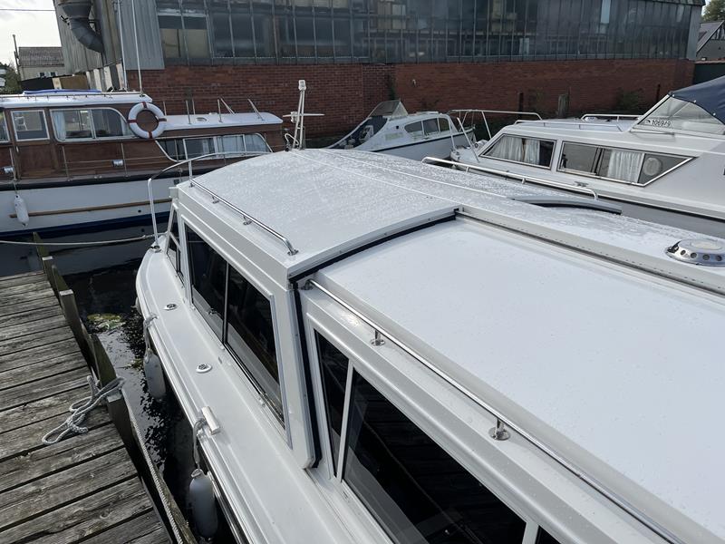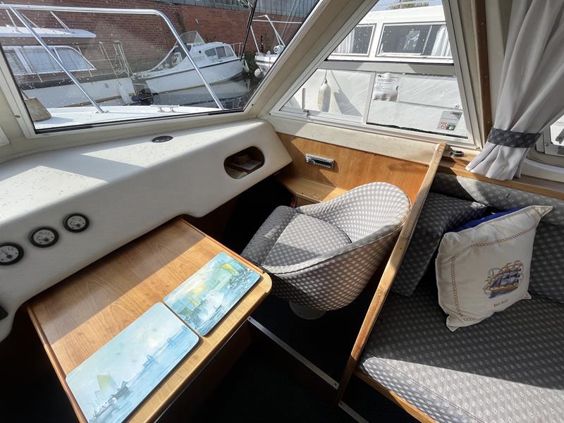 SHEERLINE 740 Flair – 2002 – Powered by a single Nanni 4.150 37hp diesel engine through a hydraulic drive. 2 berth accommodation with a toilet & shower compartment. Specification to include; holding tank, Vetus bow thruster, Webasto warm air heating, shore power, battery charger, electric anchor winch, split sliding roof, full winter cover, and fully equipped galley. BSC Expires Oct 2025. Antifouled, compounded & polished Oct 2023. A highly desirable river cruiser, tailor-made for river cruising with single-level accommodation, a low air draft for the Broadland bridges and single diesel fuel economy!