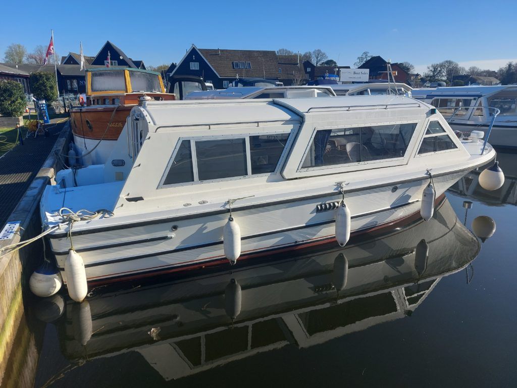 SHEERLINE 740 Flair 1989 – Powered by a single Nanni diesel engine through a hydraulic drive. Specification to include; 3 berth accommodation including saloon area, Vetus bow thruster, Mikuni warm air heating, toilet & shower, two burner hob, oven and grill, fridge, split sliding wheelhouse roof, electric Lofrans windlass. A nice example of these sought after river cruisers. Boat Safety Certificate 18 May 2026