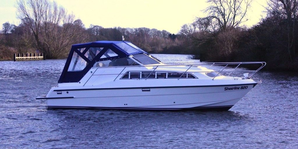 Sheerline 820 – 2015 – Powered by a Nanni N4.50 50hp diesel engine through shaft. Up to 4 berth accommodation in aft cabin & saloon. Stunning high gloss walnut joinery and leather upholstery with a specification including Bow thruster, electric windlass, warm air heating, shore power, battery charger, immersion, teak laid cockpit, extended bathing platform, folding screens & canopy arch and more. A one off opportunity to be the new owner of this truly unique & exceptional 1 owner boat.