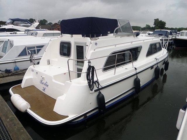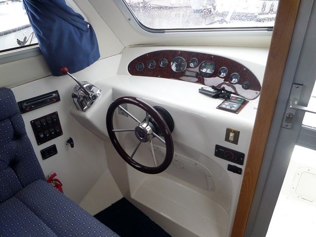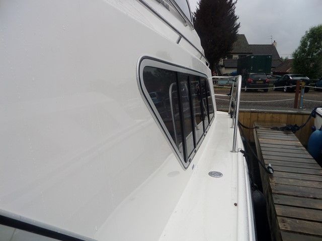 SHEERLINE 900 SUNBRIDGE – 2005, 1 x Nanni 4.150HE 38Hp diesel engine, 1 x electric toilet & shower, 2 x berths in 1 cabin (plus 3 in saloon), Boat Safety Certificate until: 2016. Big spec: shore power, battery charger, hot air heating system, folding windscreens, bow & stern thrusters with remote, upper & lower steering positions and much more. She is a beautiful example!