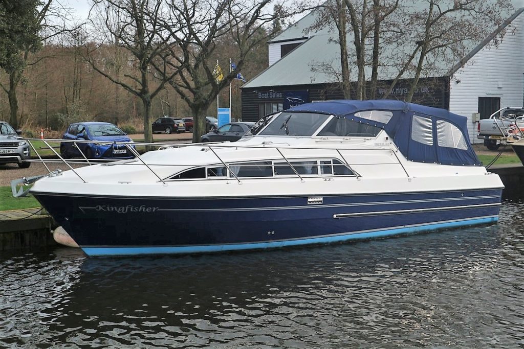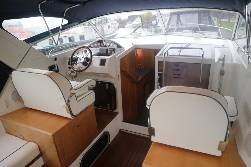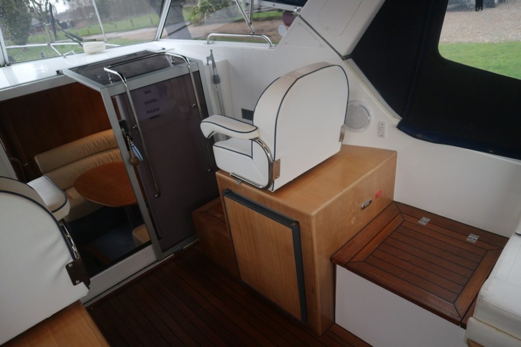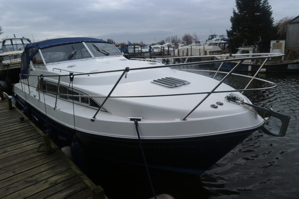 SHEERLINE 950 AFT COCKPIT – 2007 – Powered by a single Nanni 5.280HE 62hp diesel. 4 berth accommodation with one toilet and one shower. Well specified to include; Fischer Panda generator, bow and stern thrusters, Webasto warm air heating, holding tank, Lofrans electric windlass and much more! A well kept river cruiser benefitting from annual engine servicing and general good care by her diligent owners!