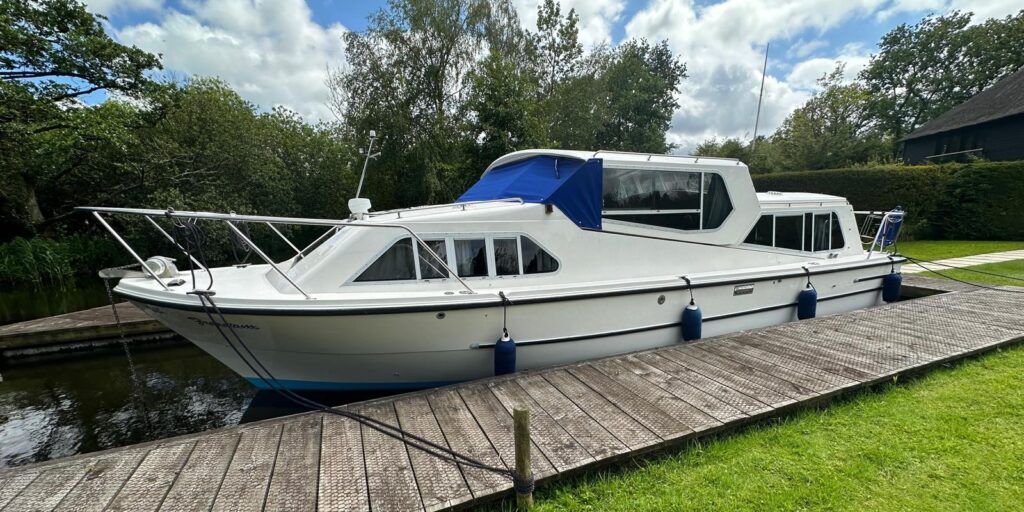 Sheerline 950 Centre Cockpit – 1990 – Single Volvo MD22 diesel engine through a shaft. 3 berth accommodation with a single toilet and shower compartment. Specification to include; bow thruster, warm air heating, electric windlass, folding windscreens, battery charger. “Freedom” is a 3 owner boat from new and has been well maintained. She was compound and polished, waxed and anti-fouled in May 2024. All of the below waterline fittings were also replaced this year. More details to follow. BSSC 16/06/2025.