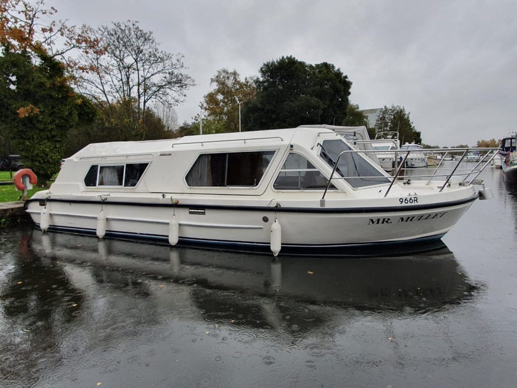 SHEERLINE A30 – 2008 – Powered by a single Nanni 40hp diesel. 4 berth accommodation with toilet and shower. Well specified to include; Bow and stern thrusters, holding tank, Nanni insert 4kw generator, warm air heating, electric windlass, air conditioning unit, remote hydraulic steering and shore power supply with 240v sockets, wide side decks offering easy access all round the boat. BSC 09/20. Split sliding saloon roof with a light oak interior timber finish! A very well equipped boat in excellent condition.