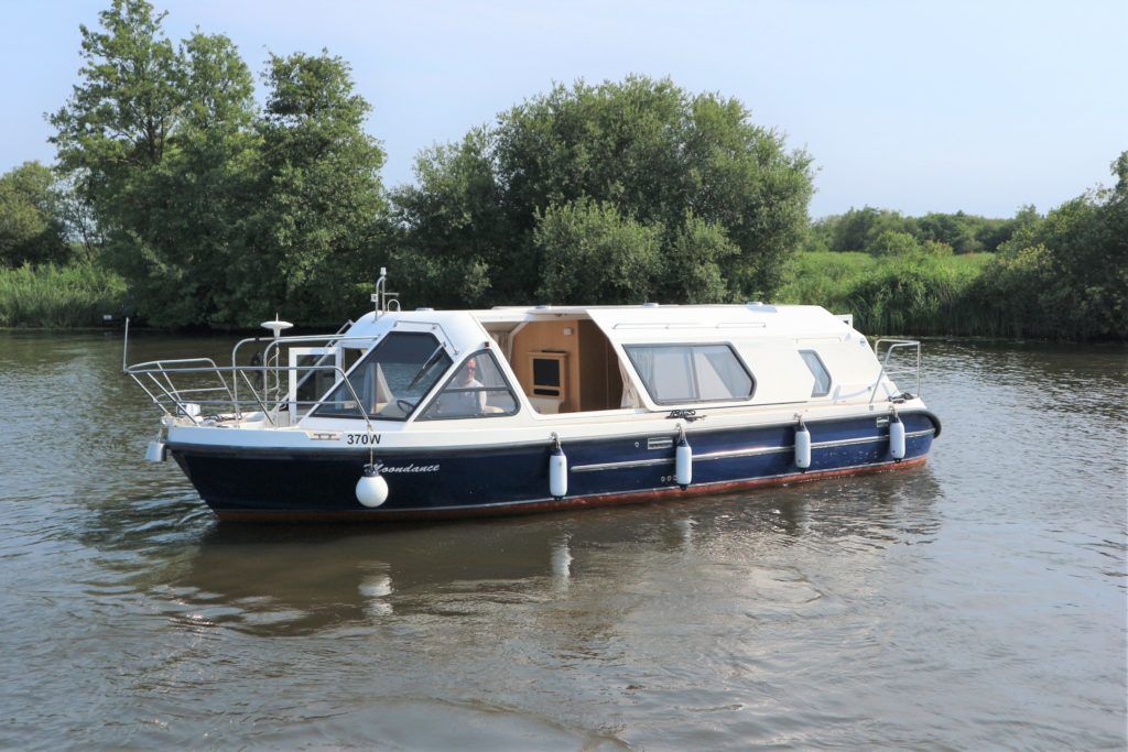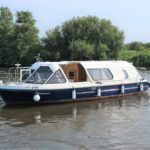 SHEERLINE A31 – 2012 – Powered by a Nanni 60hp diesel engine via hydraulic drive. Up to 4 berths in luxury accommodation with island double master cabin, convertible saloon double and 1 x toilet/shower compartment. A high end specification including bow & stern thrusters, electric windlass, shore power, battery charger, inverter, immersion, warm air heating, wine cooler, electric toilet, speed & depth log, reversing camera, full teak decking, split sliding saloon roof, forward & aft wells. A sumptuous river cruiser with a high quality fitout by Sheerline coupled with a very comfortable layout. One of very few of this quality, a must see!