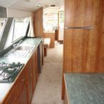 SHEERLINE A42 – 2002 – Single Nanni 50HP Diesel Engine. 6 berths with 1 heads to holding tank and 1 shower. Bowthruster, Battery charger, Waeco Separate fridge and freezer, Webasto warm air heating system. A clean and tidy example of these excellent inland cruisers offering ample living space.