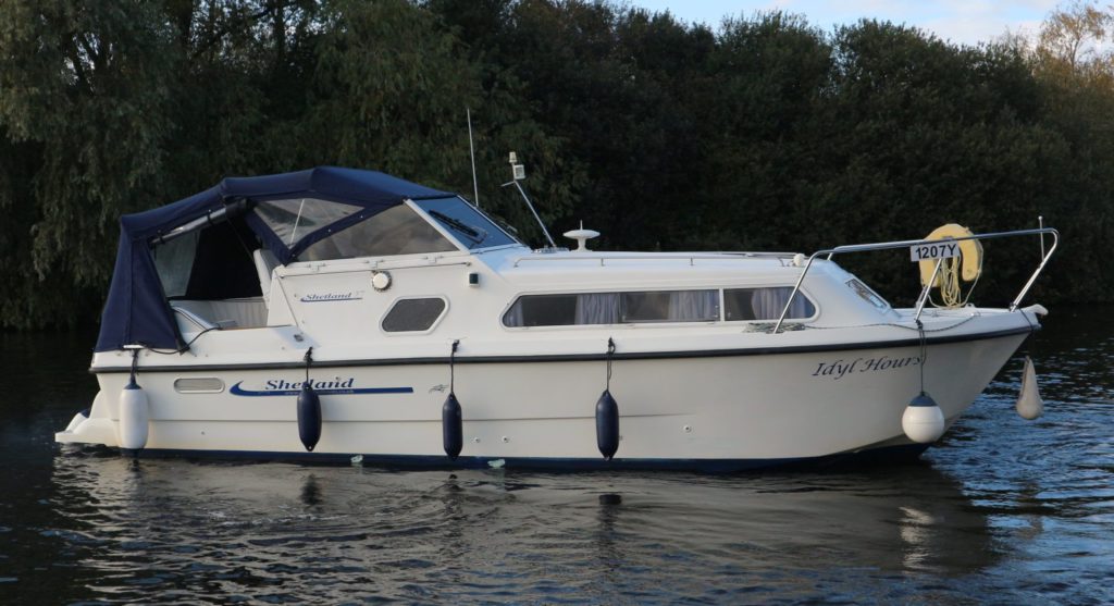 SHETLAND 27 – 2002 – Powered by a single Yanmar 75hp diesel shaft drive. 5 berth accommodation with toilet and shower. Specification including bow thruster, stern thruster, battery charger, shore power, warm air heating, holding tank, calorifier, BSC May 2024. Diesel economy with a low air draft, a great all round river cruiser! NYA Stock – 3 month engine and gearbox warranty.