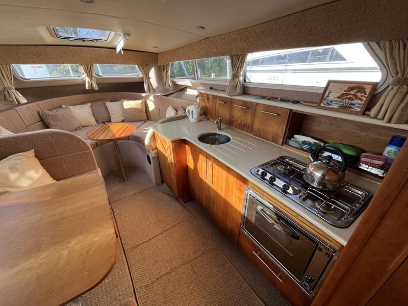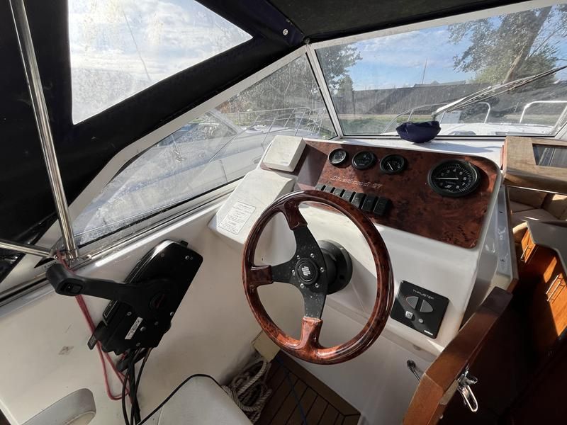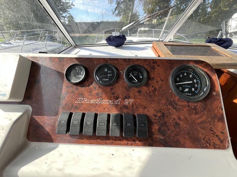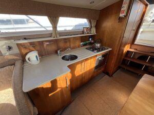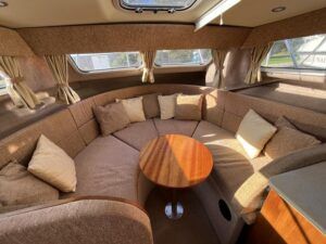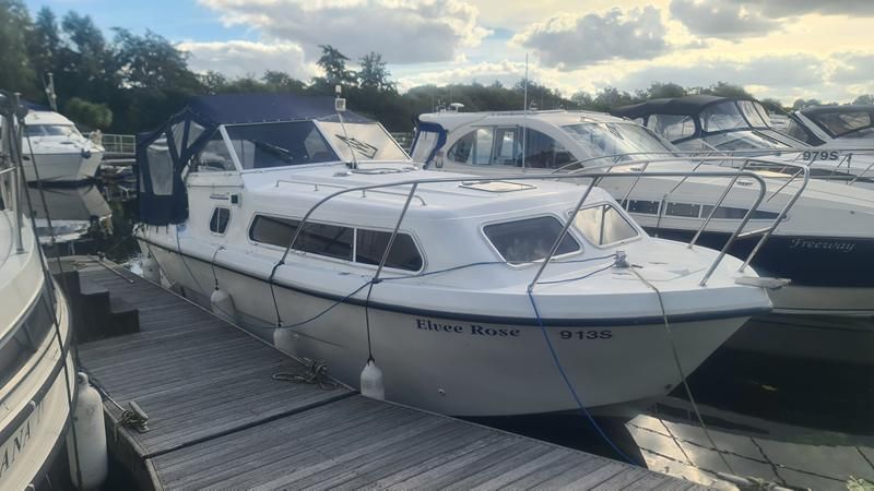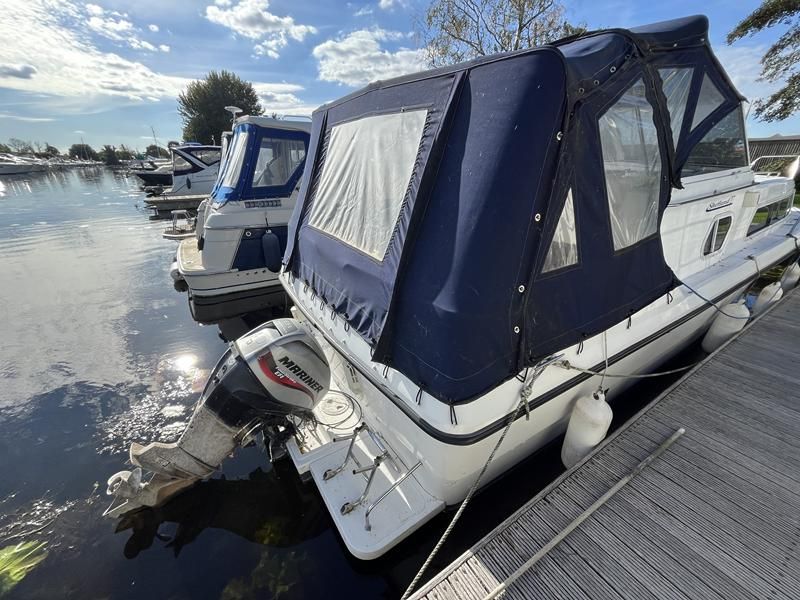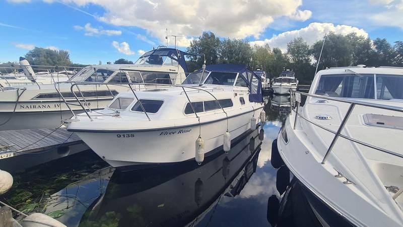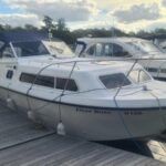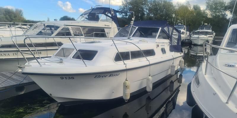 Shetland 27 – 2011 – Powered by a Mercury 40hp petrol outboard engine – 6 berth accommodation with 1 x toilet/shower compartment. Specification including bow thruster, battery charger, immersion heater, water heater, warm air heating, engine serviced June 2025, BSC 05/27, folding canopy & windscreens for increased inland access. An ever popular model with generous accommodation for her size and a high level of equipment.