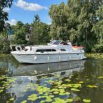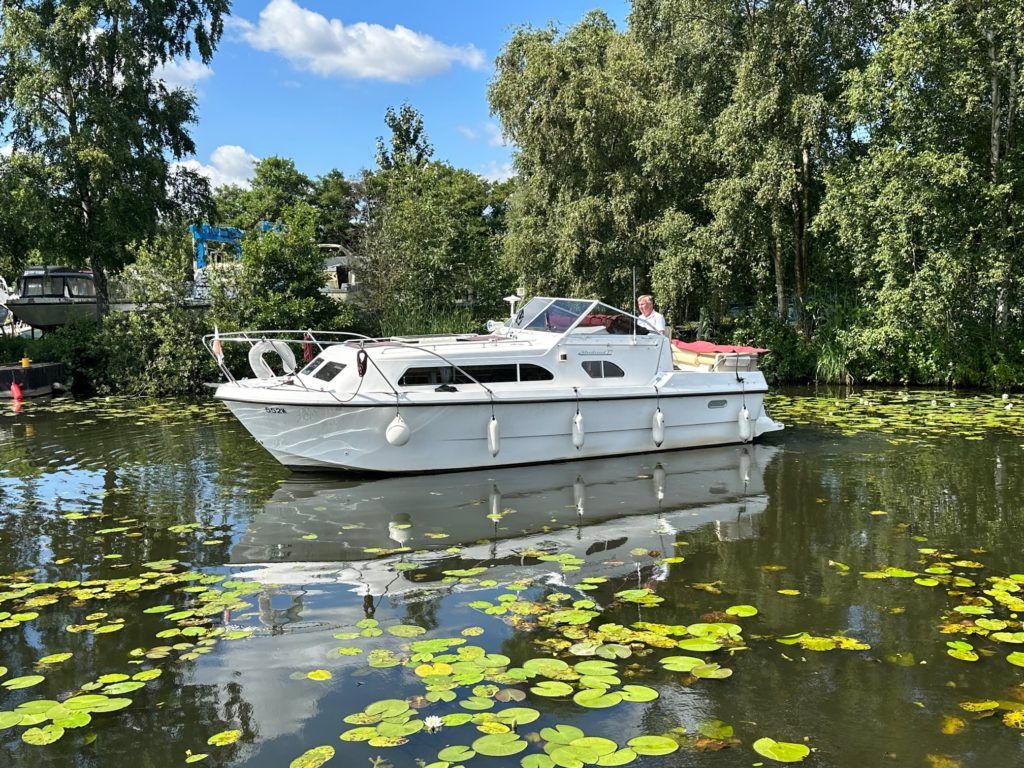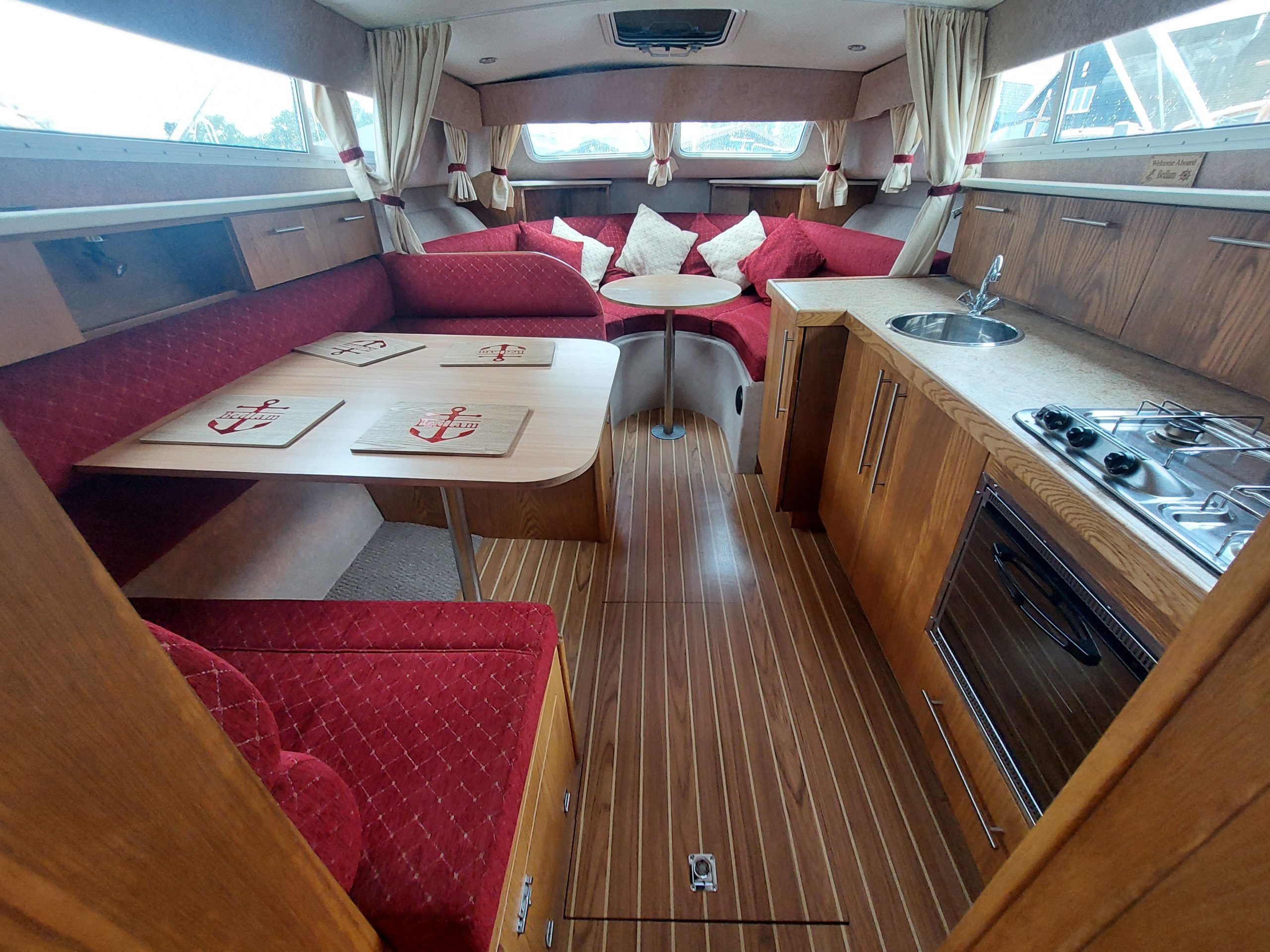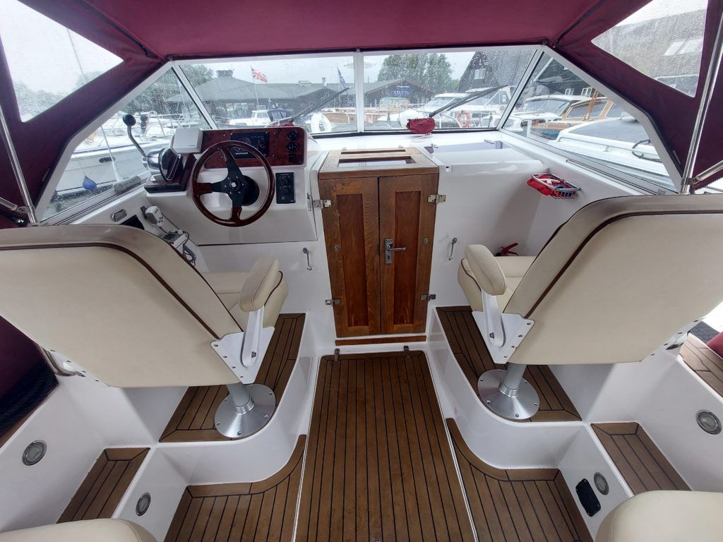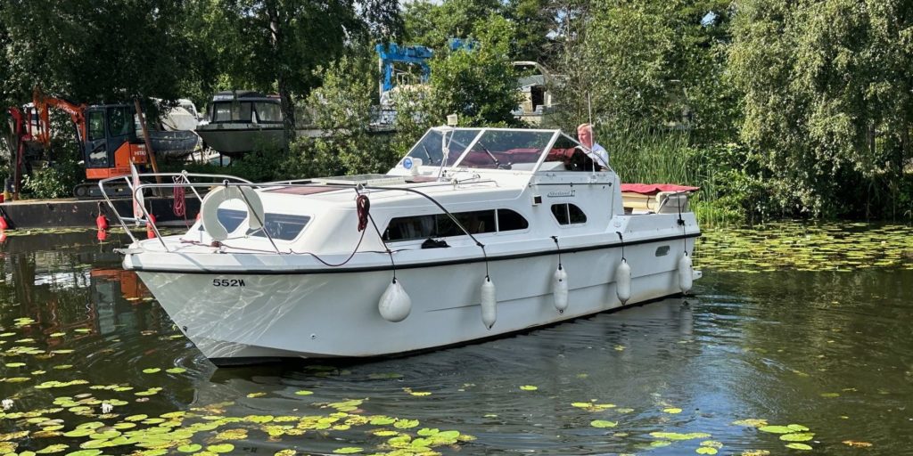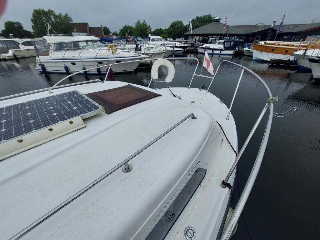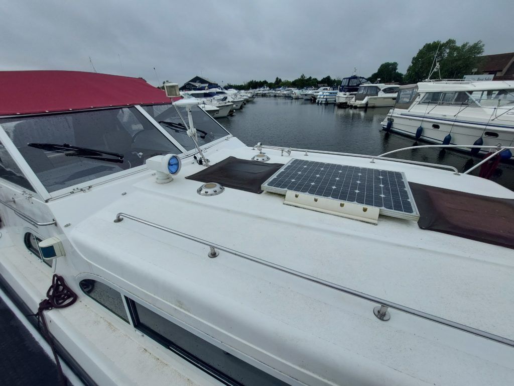 Shetland 27i – 2012 – Single Yanmar 39hp diesel engine through a shaft. 5 berth accommodation with a single heads/shower. Specification to include; bow and stern thrusters, battery charger, shore power, search light, folding windscreens. A boat with a a good specification and low air draft allowing passage under most Broads bridges. BSC 24/08/2024.