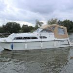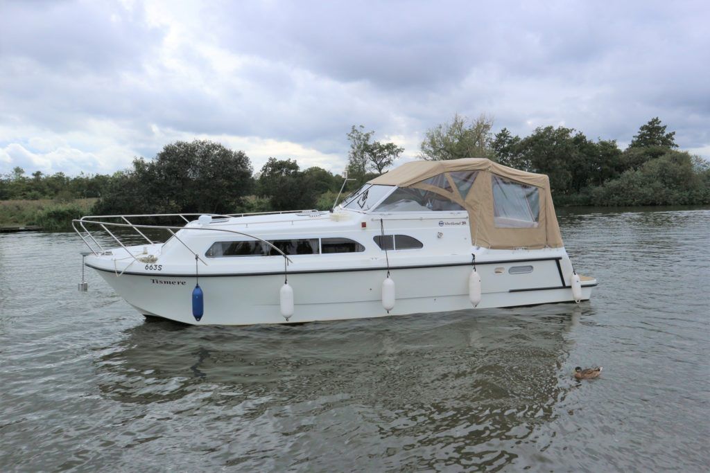 SHETLAND 29i – 2010 – Powered by a Yanmar 54hp diesel engine. Up to 5 berth accommodation with 1 x electric toilet/shower compartment. Well equipped galley with 3 burner gas hob, oven & grill, fridge, wine cooler & microwave. A generously specified model with bow and stern thrusters, electric windlass, shore power, battery charger, immersion heater, warm air heating to cabin and cockpit, speed & depth log, synthetic Teak to cockpit & bathing platform, BSC 02/23. A sought after, stylish and practical river cruiser with a low air draft, ideal for extended inland cruising.