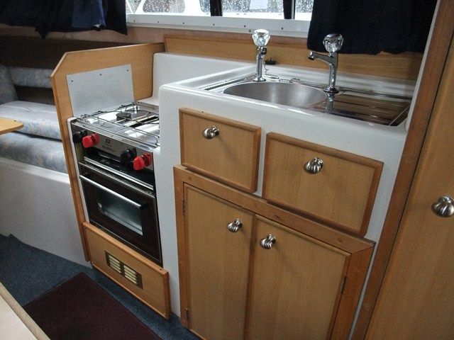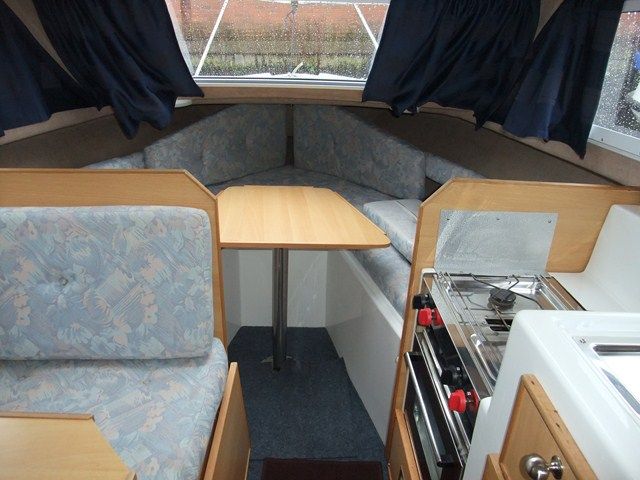 SHETLAND 4 + 2 HARD-TOP VERSION – 2000 – Single 25hp 4 stroke outboard, 4 berths, boat safety certificate, shore power, oven with grill and twin hobs, Porta Potti and shower. The Shetland 4 + 2 has always been a popular starter boat and a great introduction to boating thanks to the open plan layout that offers a surprising amount of space for a boat of this size.