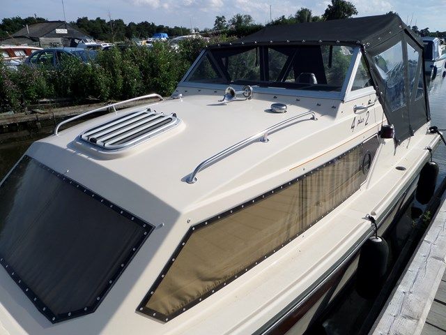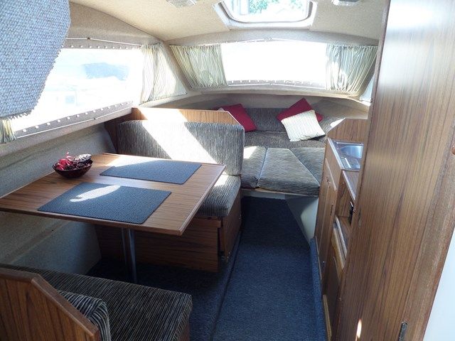 SHETLAND 4 + 2 – 1989, 1 x Mercury 15Hp Big Foot Four Stroke petrol engine (2006), 4 berths in 1 open plan cabin, 1 x toilet, Boat Safety Certificate until: 2016. Shore power, holding tank, inverter, TV aerial, 2 x batteries, gas cooker. Renovated with new carpets, upholstery, curtains, canopy, sea toilet & holding tank. In excellent condition, well worth a look!
