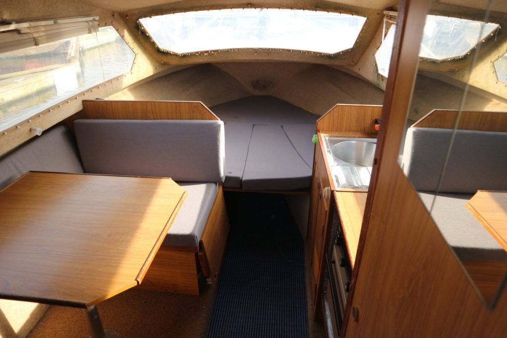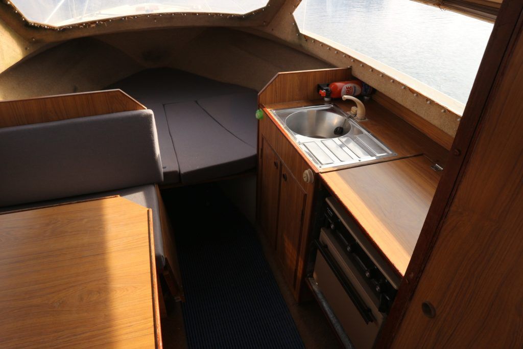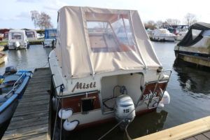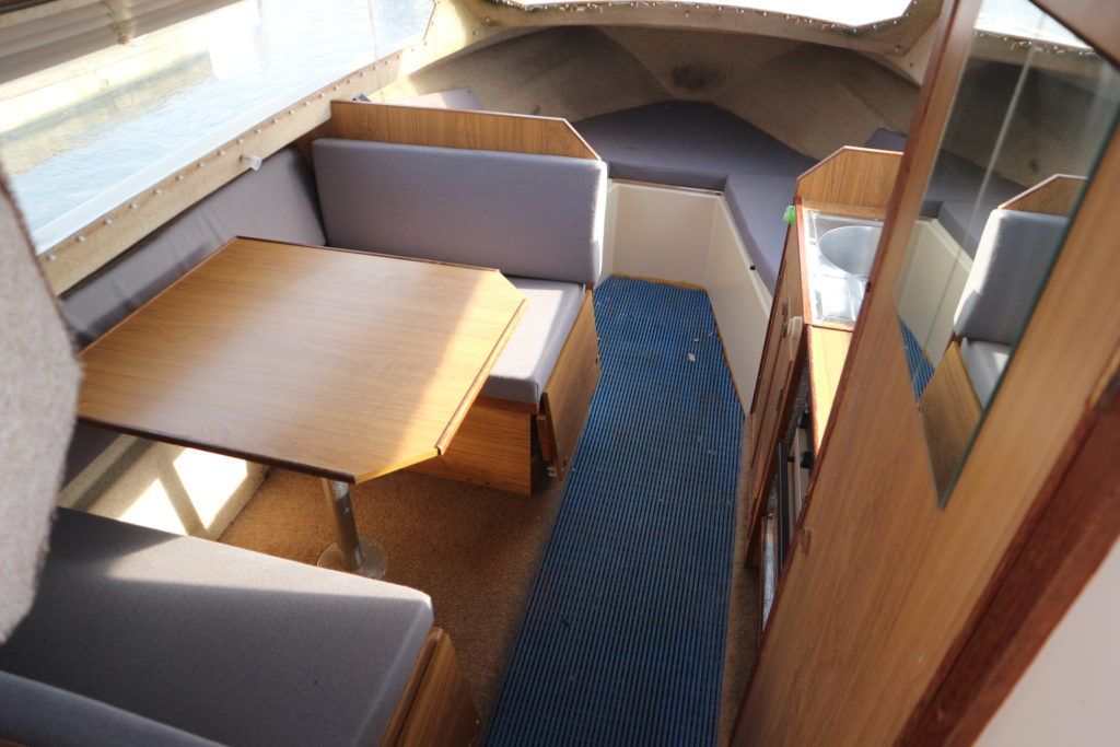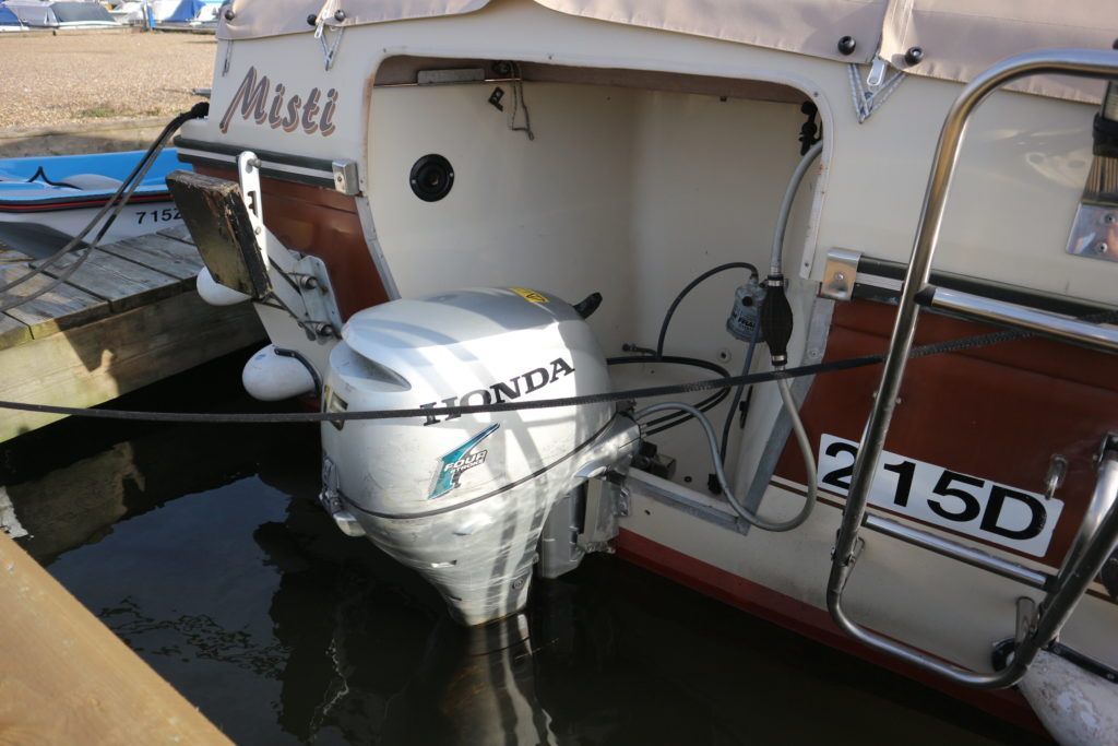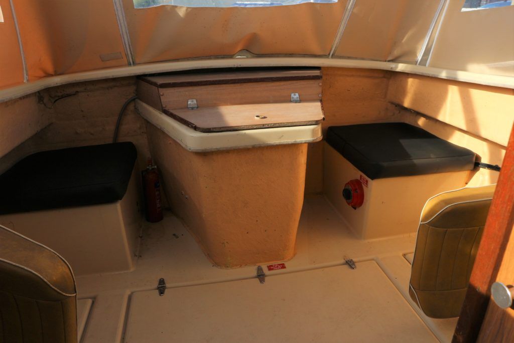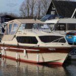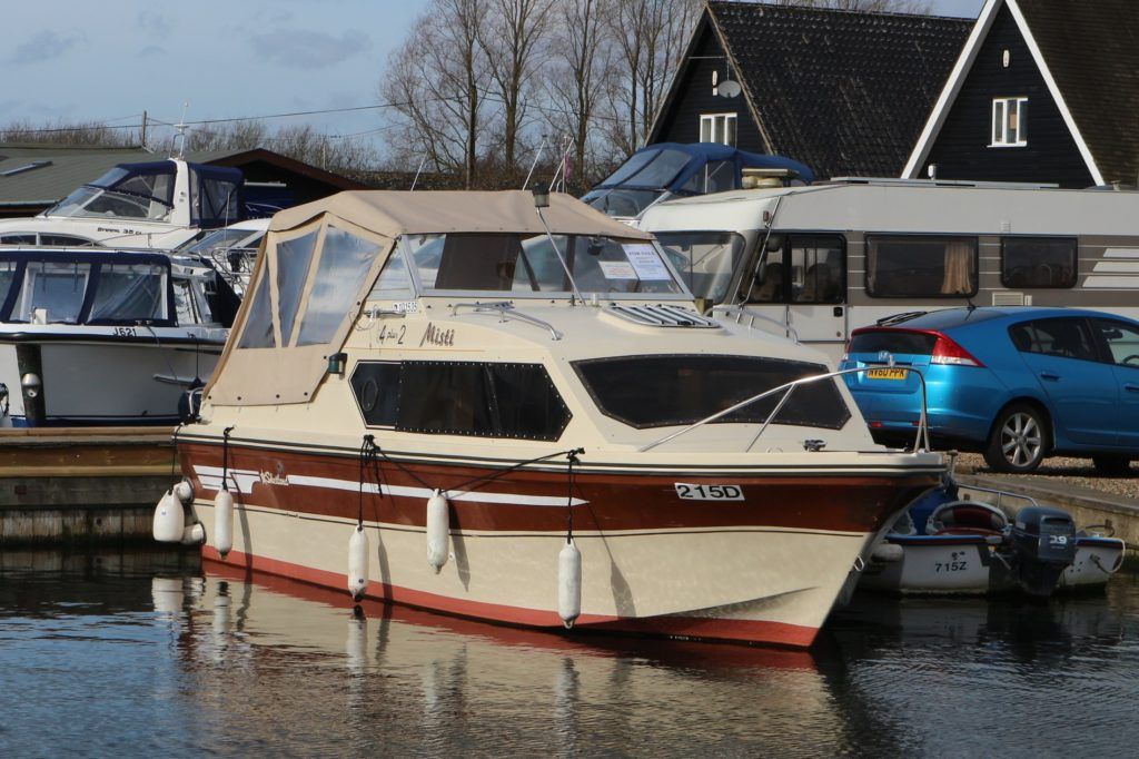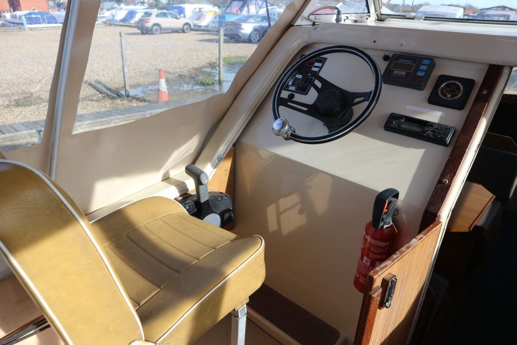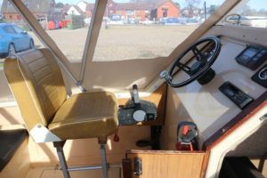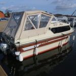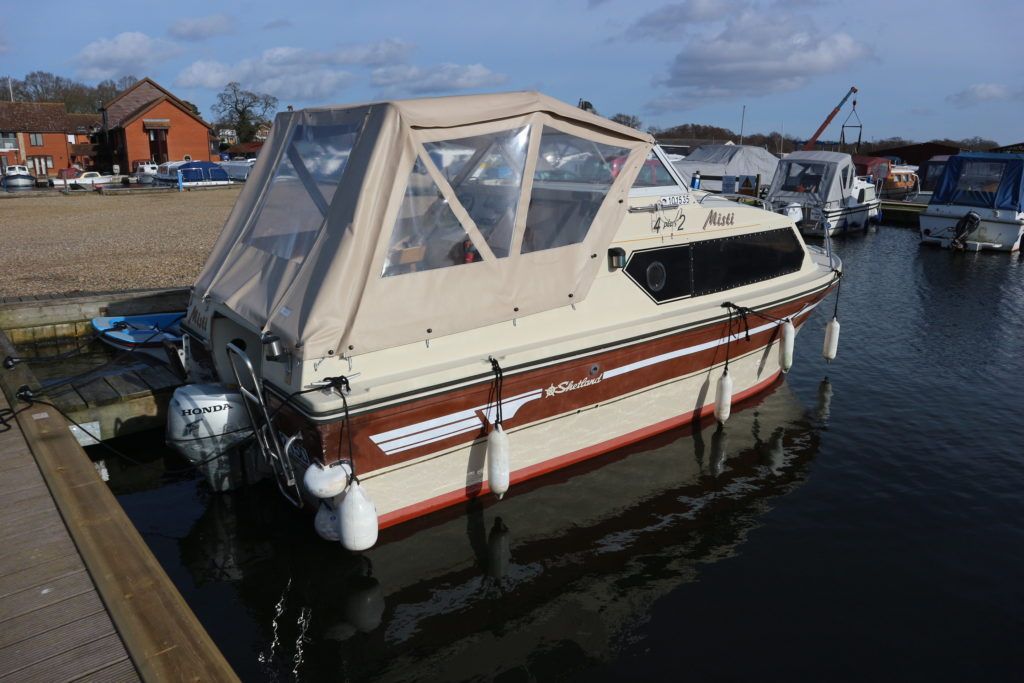 SHETLAND 4+2 – 1986 – Powered by a Honda 15hp outboard petrol engine. 4 berth accommodation with separate toilet compartment with porta potti. Galley with cold water supply, two burner hob with oven and grill. Full cockpit canopy, auxiliary outboard bracket. Folding windscreens allowing passage through Broadland bridges. Polished, antifouled & serviced 01/20. Ideal entry level into boating.