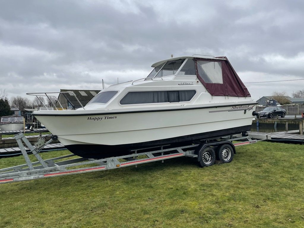SHETLAND 4+2 – Built 2013 and launched 2014, Mariner 20HP outboard serviced 2020, up to 6 berth accommodation, toilet and shower compartment, great spec including – holding tank, heating, shore power, auxiliary 5hp outboard, Numax battery charger. Boat safety certificate expires 2022. One owner from new and kept on a trailer each Winter. Hull Antifouled 2021. In good order throughout – price includes trailer – a great package!