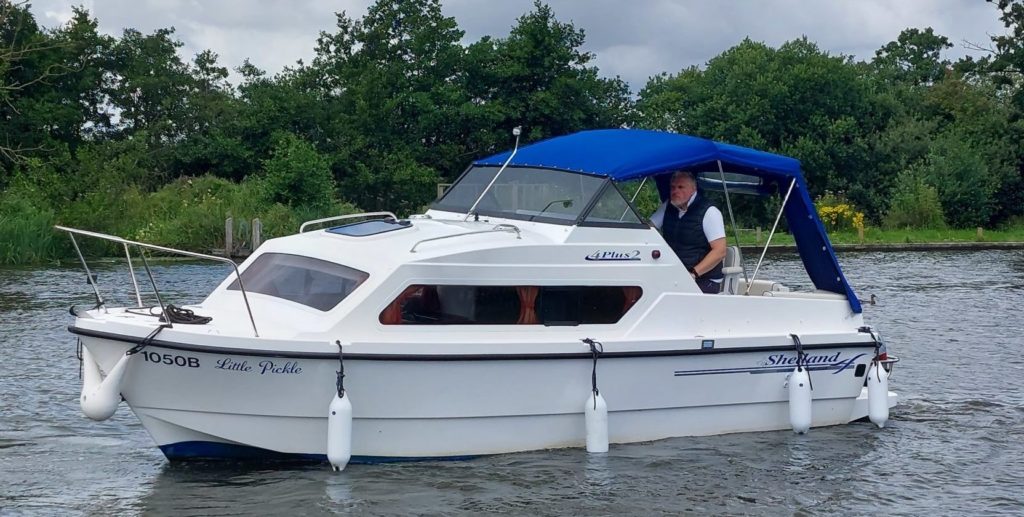 Shetland 4+2 – 2020 – Powered by a single Mariner 40hp outboard petrol engine. Up to 6 berth accommodation with a single toilet/shower. Specification to include; Shore power, 240v sockets, navigation lights, transom gate, holding tank. A late and well equipped version of these ever popular river cruisers, one of only a few with the desirable transom gate.
