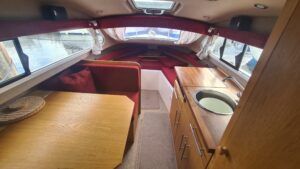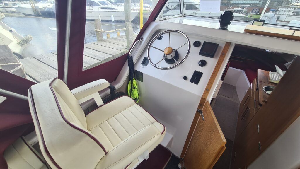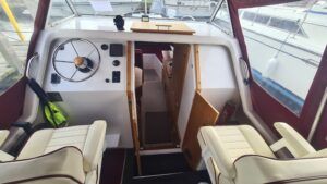 Shetland 4+2 – 2015 – 1x Mariner 4 Stroke 20HP Outboard Petrol Engine – 4/6 berth accommodation, warm air heating, hot and cold water system , shower, Remote control searchlight, nasa depth and speed log, solar panel, led navigation lights, folding screens, antifouled 11/2025 and Engine serviced 11/2025 With a low air draft, this is a perfect introduction to boating on the Broads or other inland waterways presented in great condition.
