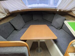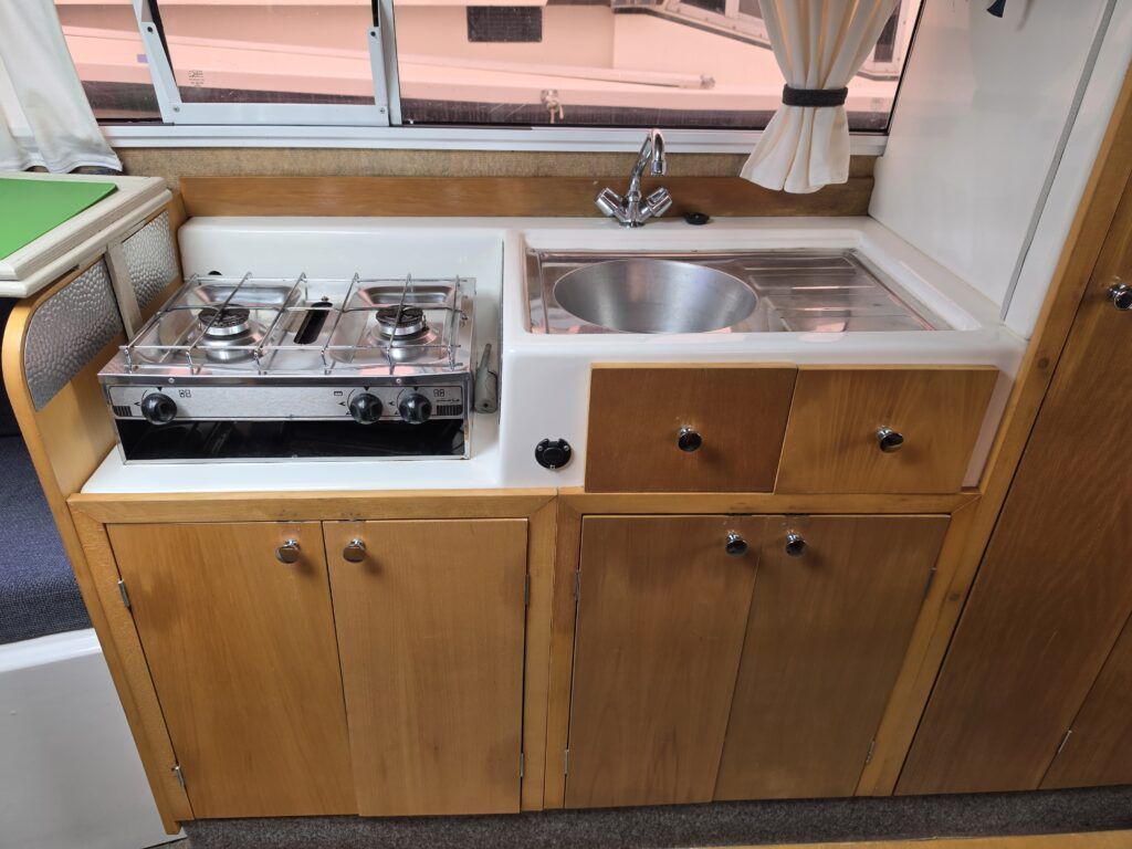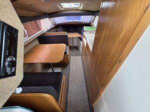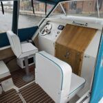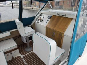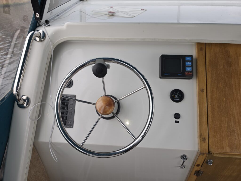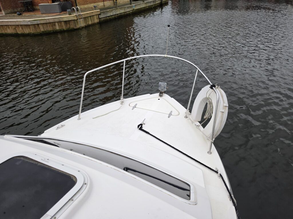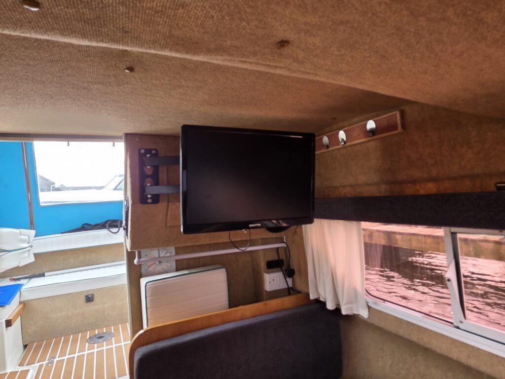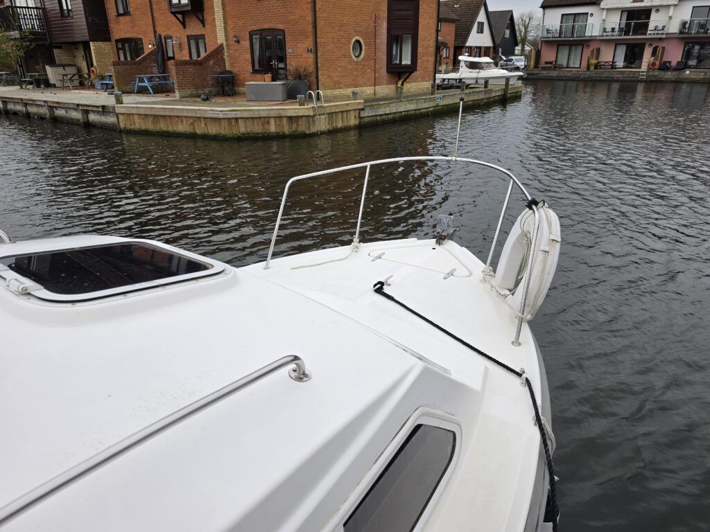 Shetland 4+2 – 2010 – Powered by a 20hp Honda outboard engine. Up to 6 berth accommodation with a separate toilet and shower compartment. Specification to include; Shore power, battery charger, water heater, depth log, 2x batteries, stereo, refrigerator, gas hob, navigation lights, microwave, 12v sockets and more. BSC Dec 2029. Engine serviced 2025. A clean, well kept cruiser offering easy and enjoyable inland boating.