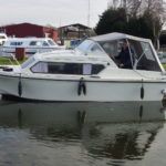 SHETLAND 4+2 – 1990, Yamaha 9.9HP 4 stroke outboard with electric start, 4 berths with additional two berths in cockpit area. BSC 2016, Spec also includes folding windscreens, full cockpit canopy, two burner gas hob with grill, fridge, cold water supply, chemical toilet, compass, battery charger. Ideal starter cruiser.