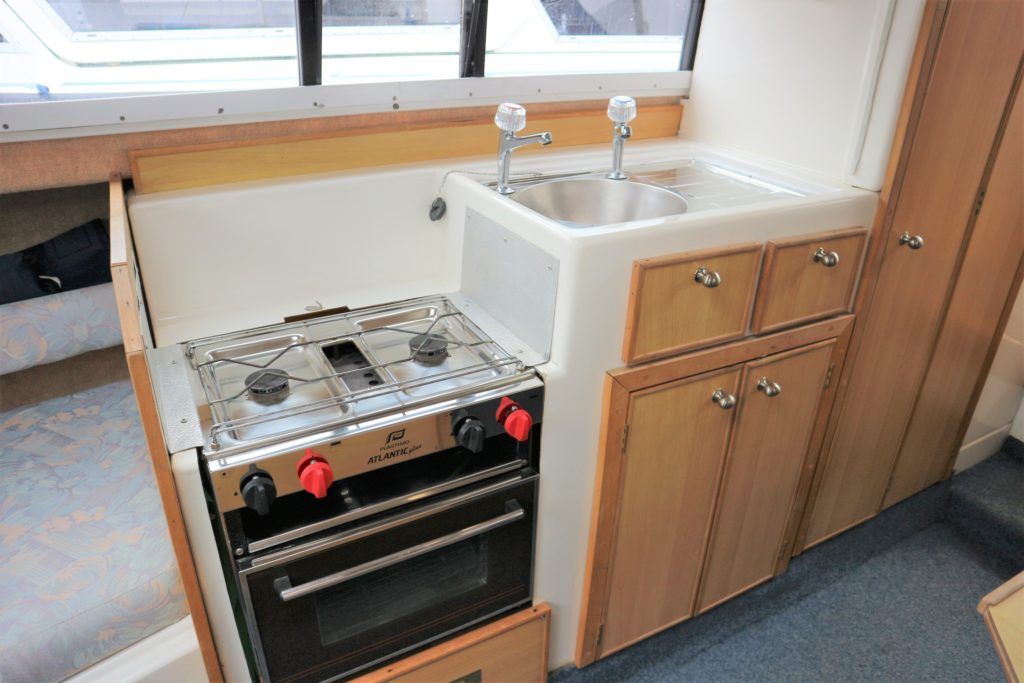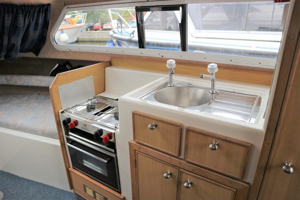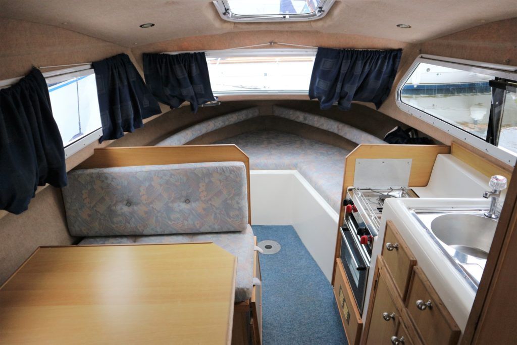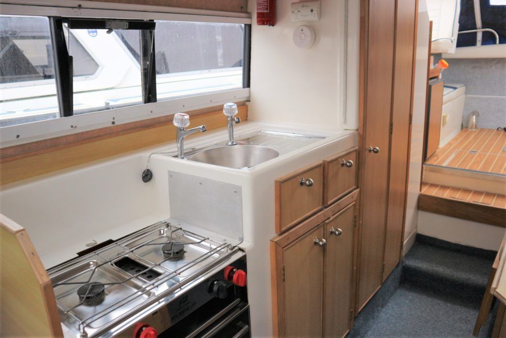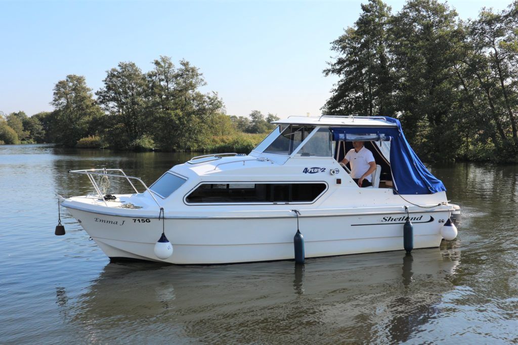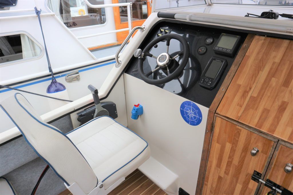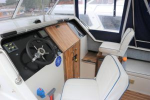 SHETLAND 4+2 HARD TOP – 2000 – Yamaha 25hp outboard petrol engine. 4 berth accommodation with 1 x chemical loo/shower compartment. Galley with two burner hob, oven and grill, fridge and sink. Spec including shore power, battery charger, warm air heating, gas fired hot water boiler, Teak & Holly flooring to cockpit. BSC 07/20. A compact yet spacious cruiser with comfort and accommodation in mind. A great introduction to boating.