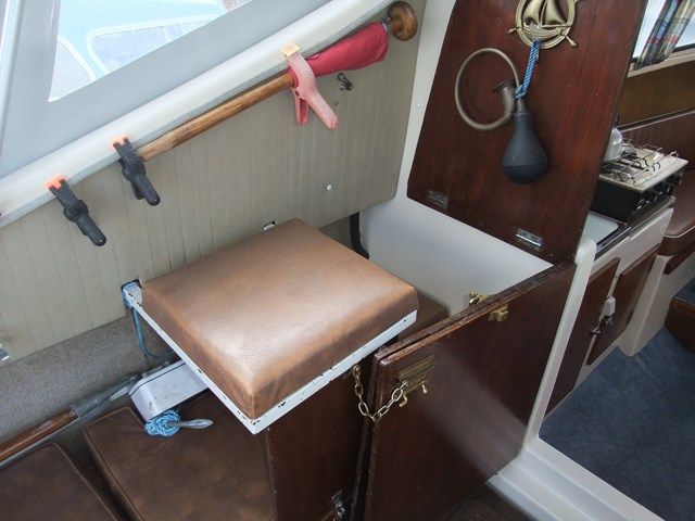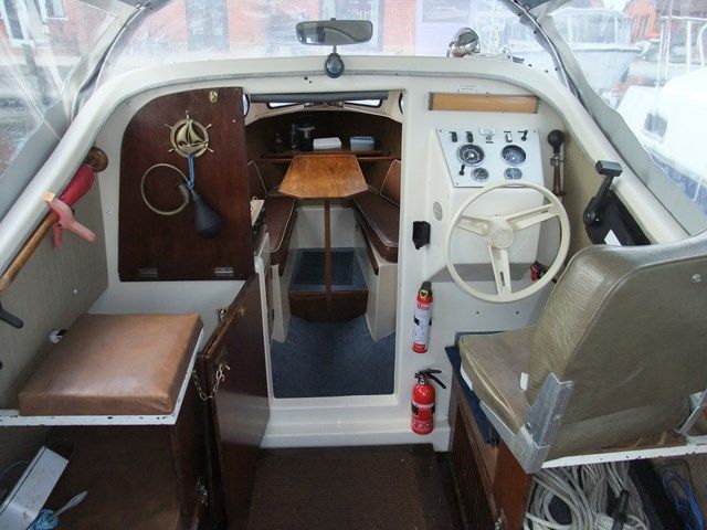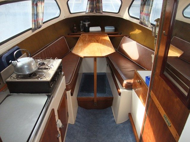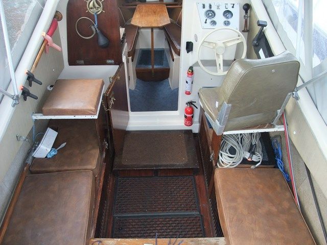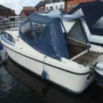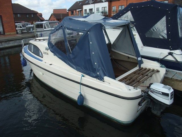 SHETLAND SPEEDWELL – Circa 1974, 1 x Honda 15Hp petrol outboard engine with electric start & stop, 2 berths in 1 cabin (plus 2 under canopy), 1 x chemical toilet, GRP hull – original gel coat. Boat Safety Certificate until: 2015, new canopy 2012, mud weight, navigation lights. She has a low air draft, making her ideal for cruising the Norfolk Broads.