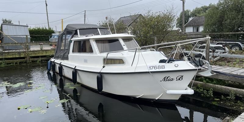 SJL Saturn 25 – 1991 – Powered by a Volvo Penta MD22 60hp diesel engine. 2 berth accommodation with a separate toilet compartment. Specification to include; heating, holding tank, calorifier, shore power, battery charger, fish finder and more. Antifouled 2024, engine and outdrive service 2024. Outdrive rebuild July 2024. New canopy 2023. Refit 2022. Folding screens. A well-maintained Saturn 25, recently serviced with numerous upgrades. An excellent and affordable choice for a starter boat. RECENTLY REDUCED!