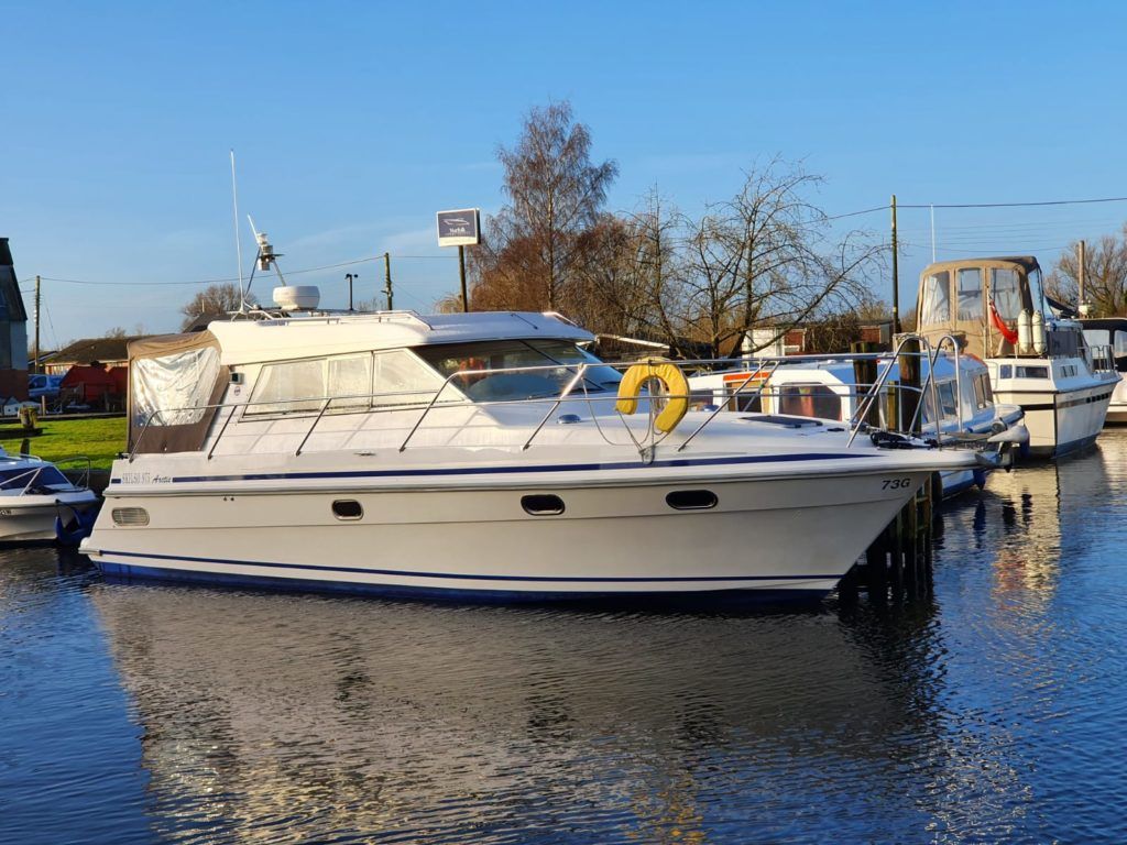 SKILSO ARCTIC 975 – 1999 – Powered by twin Volvo TAMD-31P 150hp diesel engines. 4 berth accommodation with toilet and shower facility. Specification to include; Eberspacher warm air heating, electric windlass, bowthruster, shore power supply with battery charger, 240v immersion. A range of navigation equipment to include; Raymarine SL70c, radar, autopilot, VHF. A fine example of these cleverly designed Scandinavian cruisers. NYA stock fully prepared by our Service Centre, presented in fantastic order throughout benefitting from a recent full engine service, mechanical inspection, full machine compound, polish and antifoul plus 3 month major mechanical failure warranty on the engines and gearboxes!