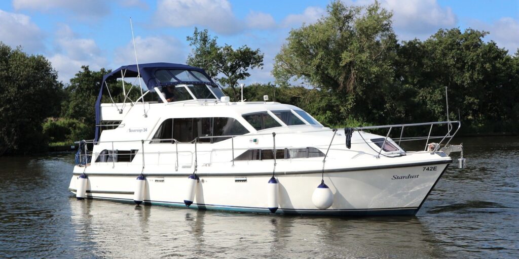Sovereign 34 Sunbridge – 1998 – Single Nanni 85hp diesel engine through a shaft. Up to 8 berth accommodation across 3 cabins with 2 toilet & shower compartments. Specification including bow and stern-thrusters, warm air heating, folding windscreens, inverter, immersion heater, battery charger. “Stardust” is a very well kept example of these ever popular cruisers with an excellent finish. One of the best examples we have seen.